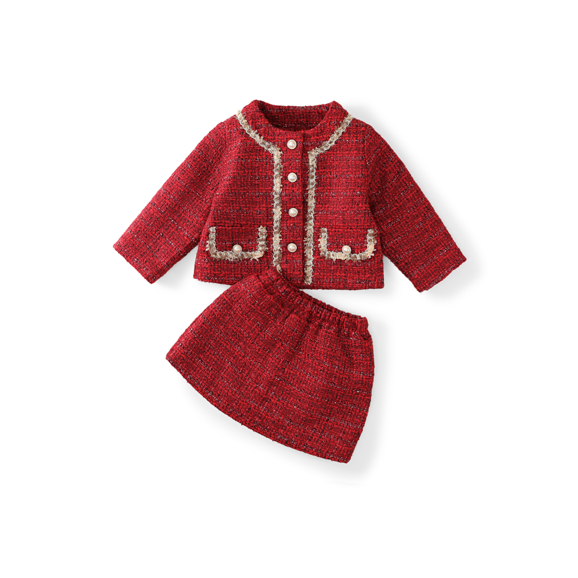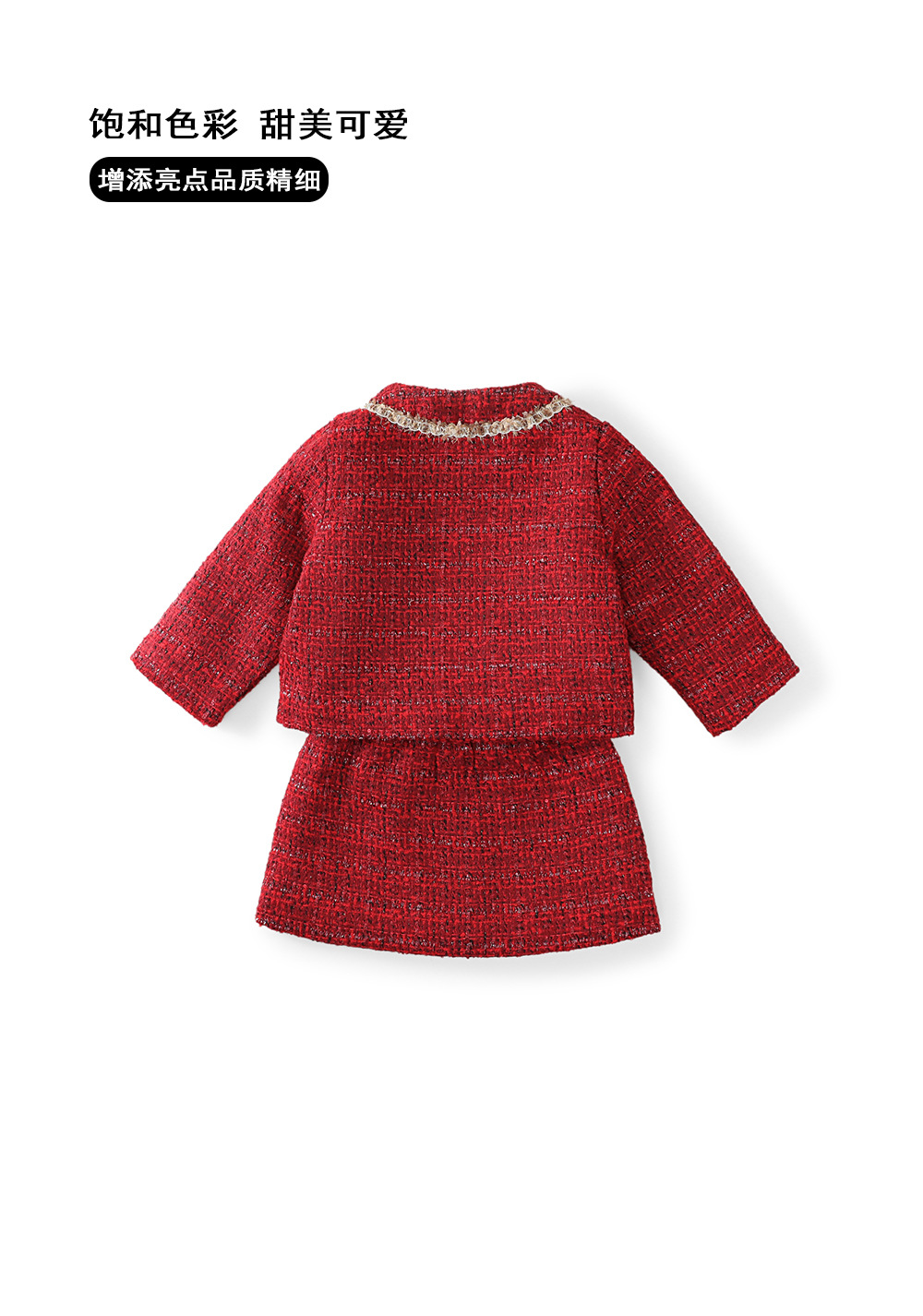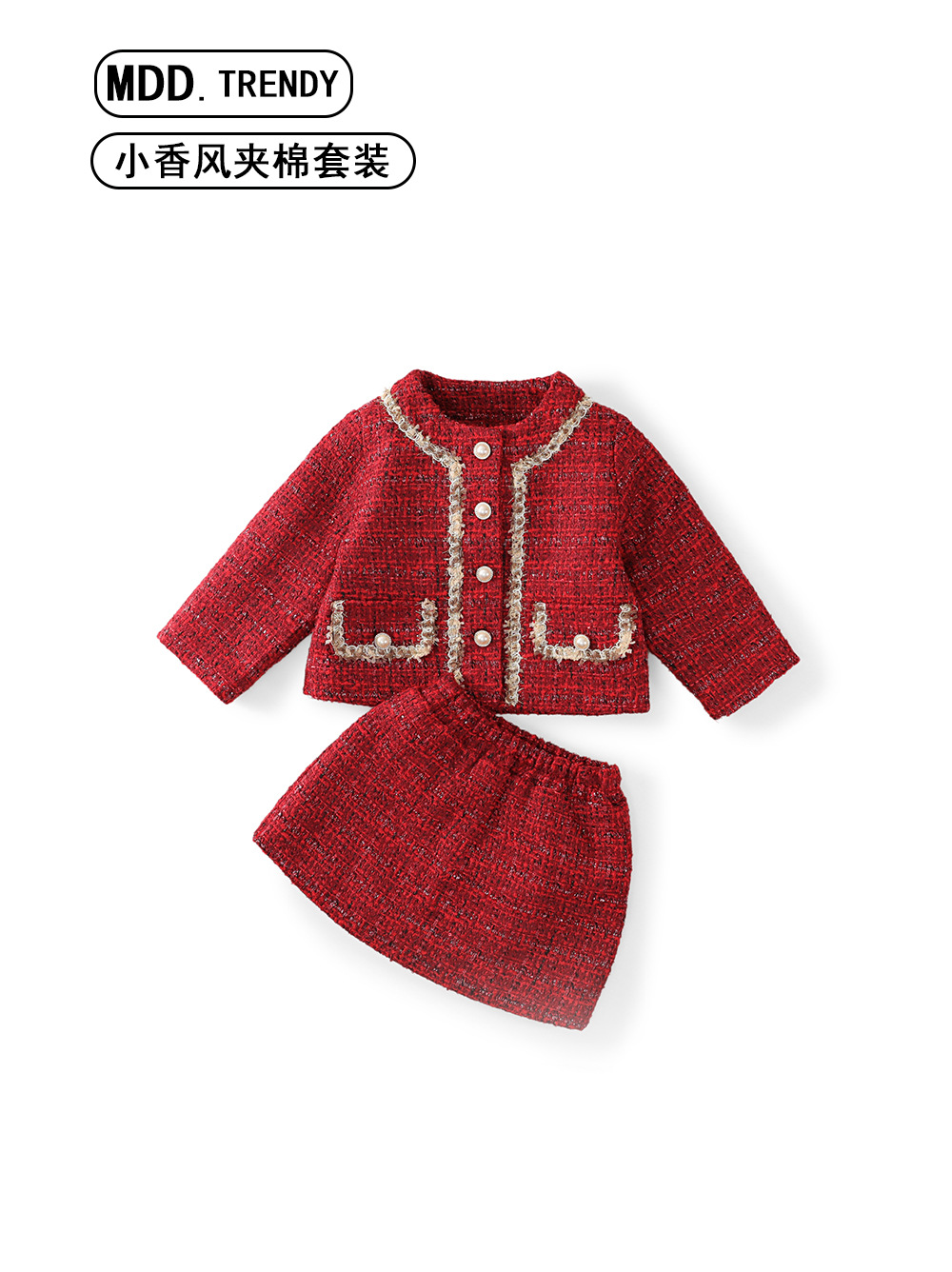 MDD 소녀 2024 새로운 어린이 가을과 겨울 샤넬 스타일 세트 어린이 서양식 짠 두꺼운 퀼트 재킷 스커트