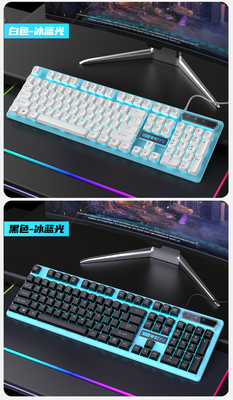 웨이 도메인 GX30A 기계식 느낌 키보드 마우스 세트 게임 전자 경쟁 보편적 인 발광 2 피스 세트 도매 세대스토어 가기