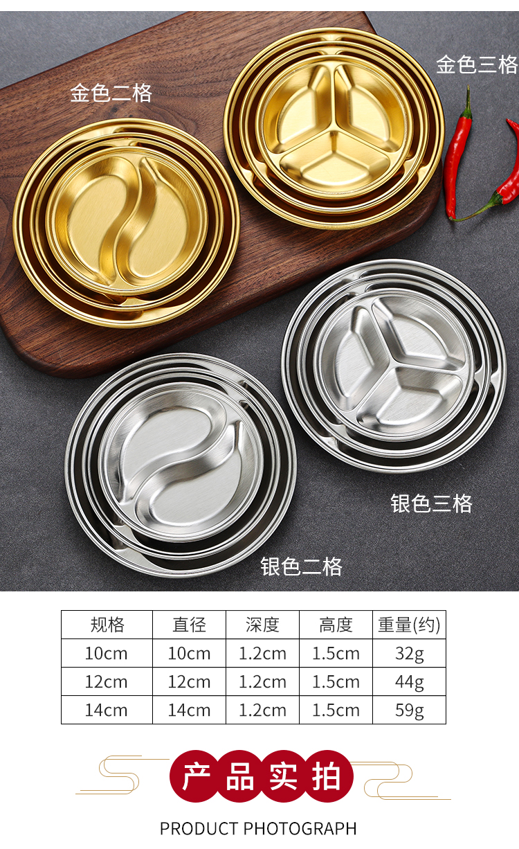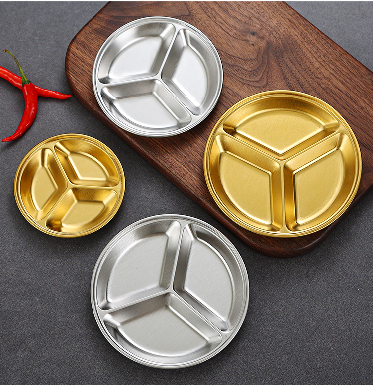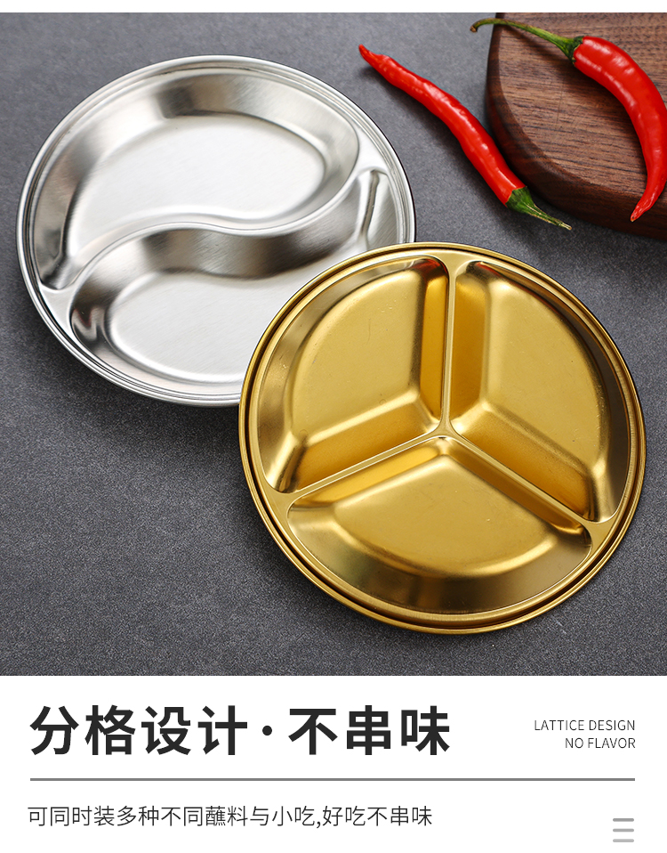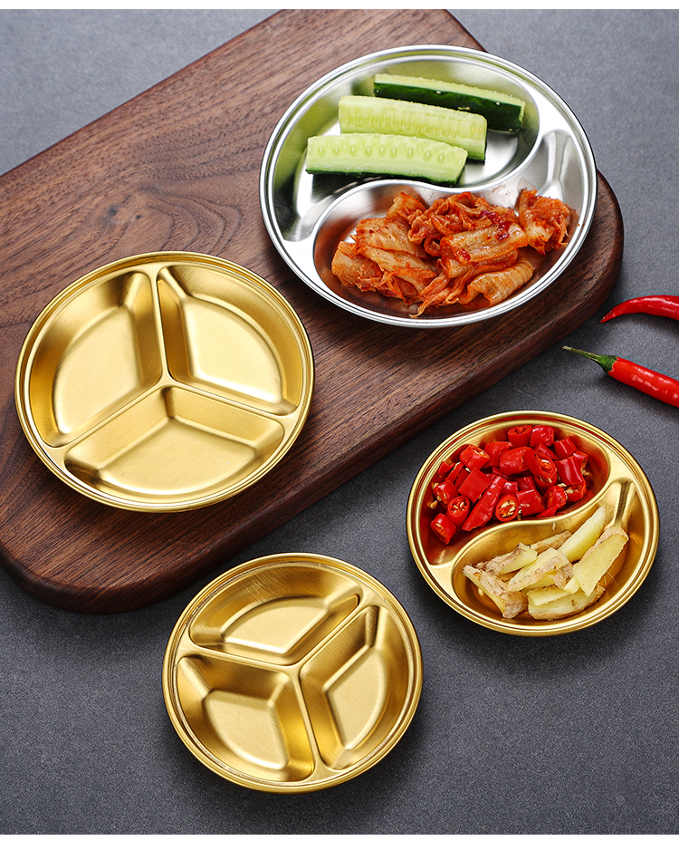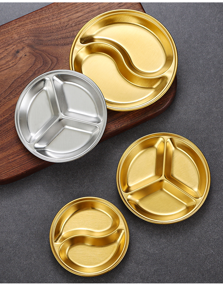 한국식 스테인레스 스틸 맛 접시 분할 프레임 바느질 어린이 과일 접시 유치원 딤섬 플레이트 창조적 인 황금 소스 바람 소스스토어 가기