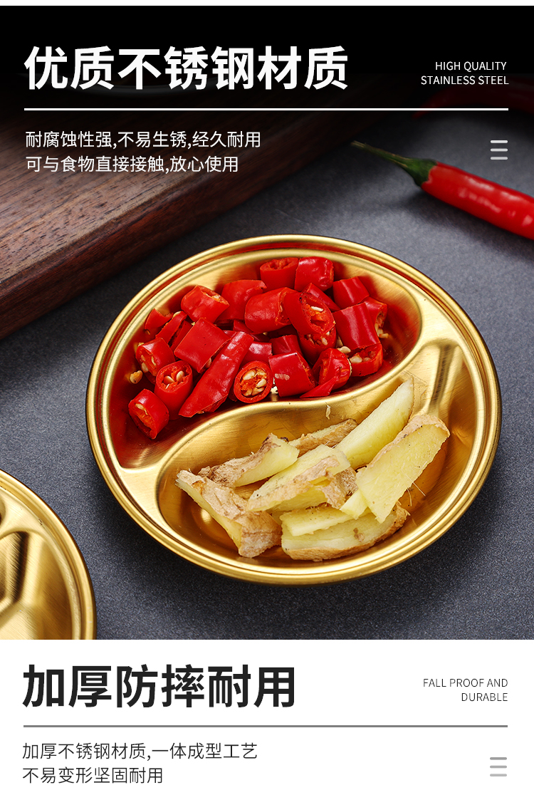 한국식 스테인레스 스틸 맛 접시 분할 프레임 바느질 어린이 과일 접시 유치원 딤섬 플레이트 창조적 인 황금 소스 바람 소스