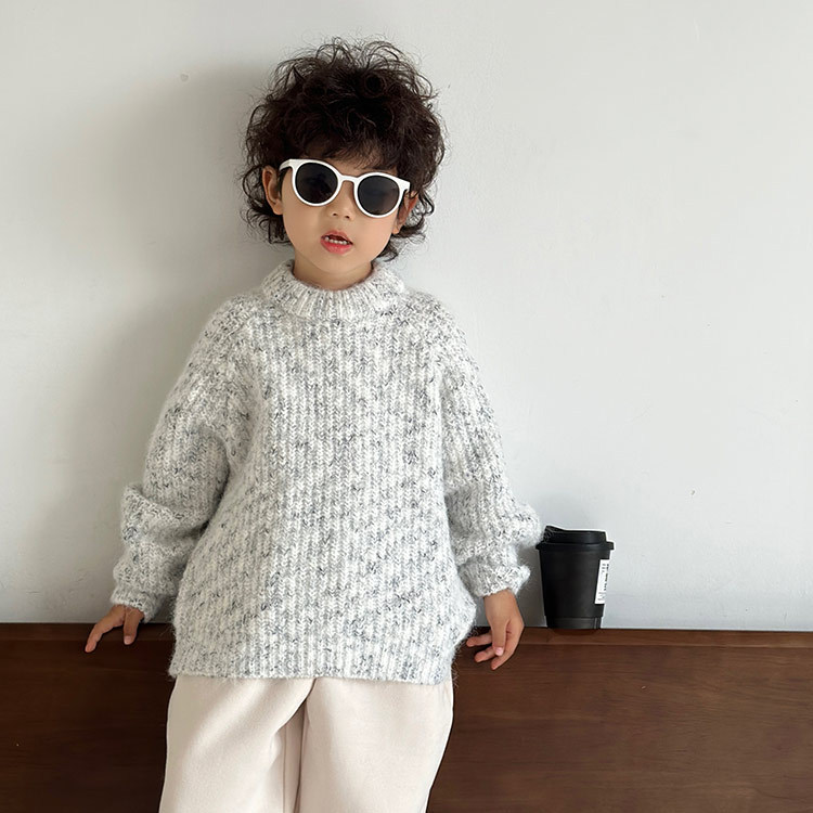 어린이 스웨터 2024 겨울 새로운 라운드 넥 소년 스웨터 따뜻한 아기 코트 어린이 의류 헤어 세대