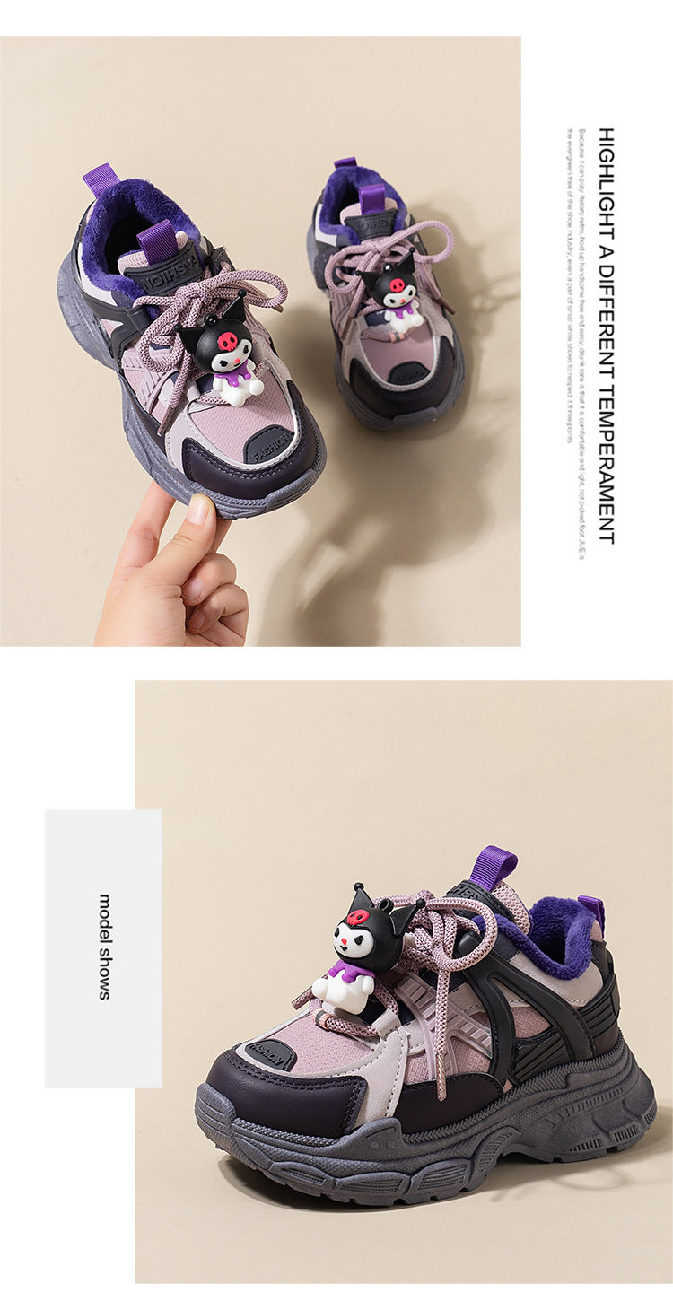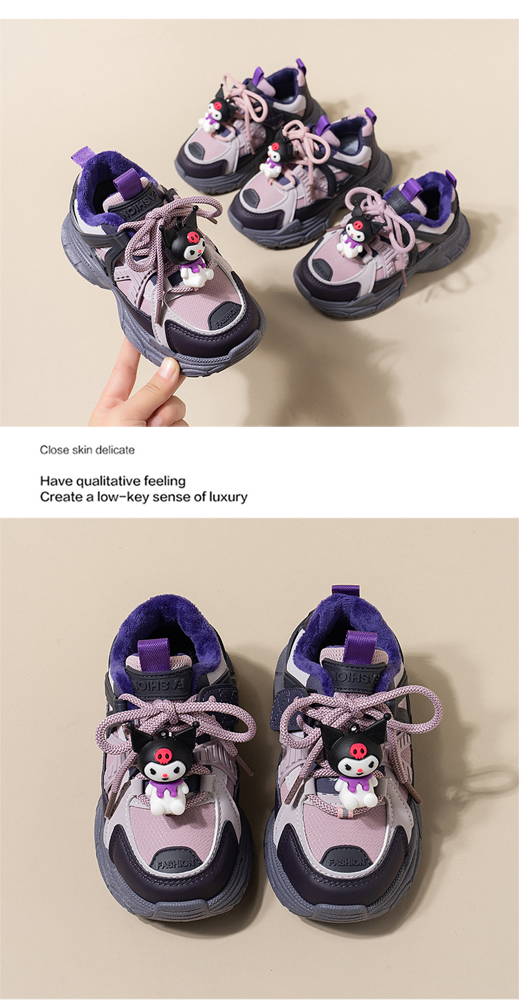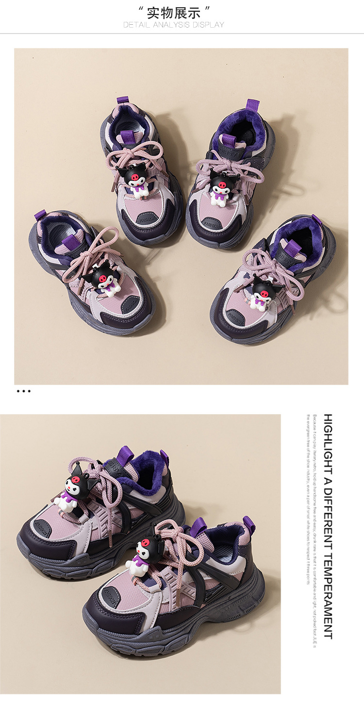 소녀 기모 쿨로 미 운동화 2024 년 겨울 새 두꺼운 밑창 어린이 캐주얼 슈즈 중 · 대 어린이를위한 유행 올매치스토어 가기