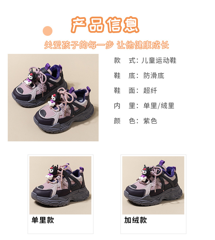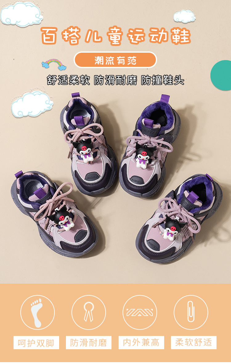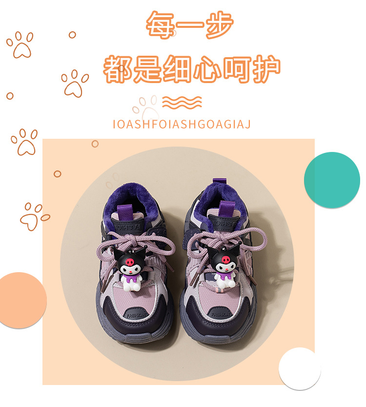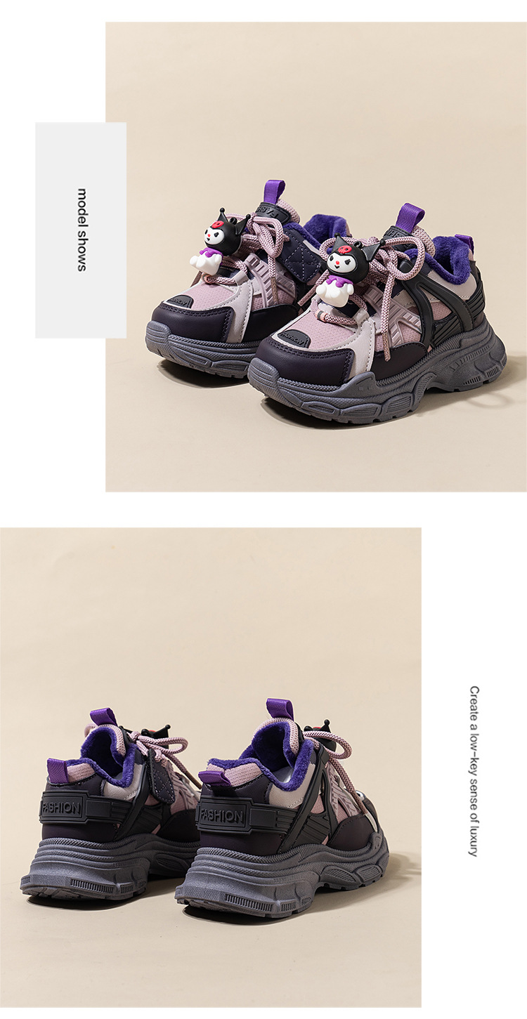 소녀 기모 쿨로 미 운동화 2024 년 겨울 새 두꺼운 밑창 어린이 캐주얼 슈즈 중 · 대 어린이를위한 유행 올매치스토어 가기
