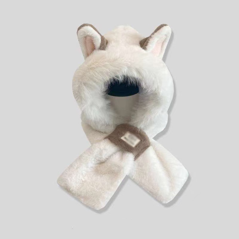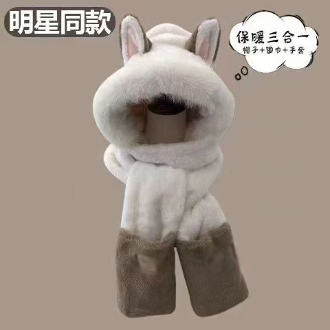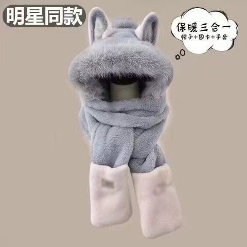 Ins 새로운 모자 스카프 파이어 폭스 3 피스 플러시 겨울 모자 방풍 따뜻한 가을, 겨울 여성 올인원 플러시 모자스토어 가기