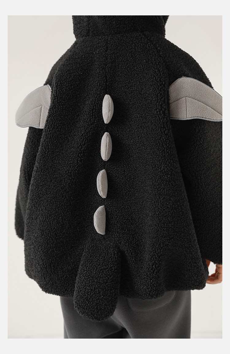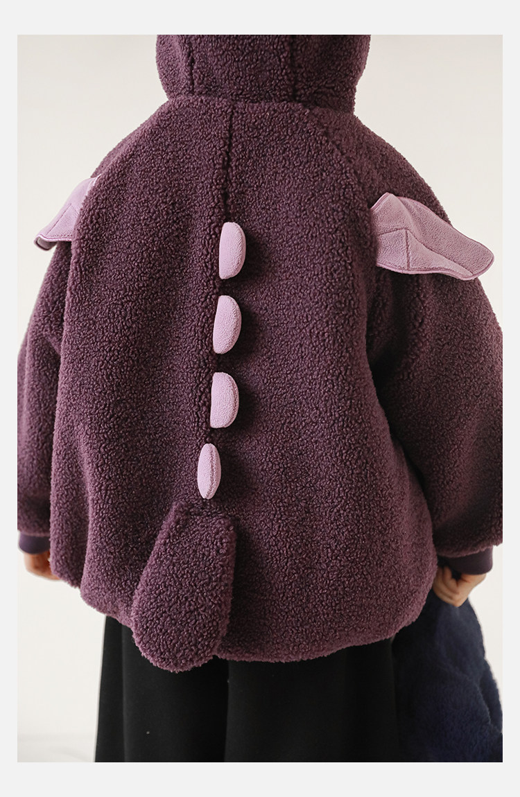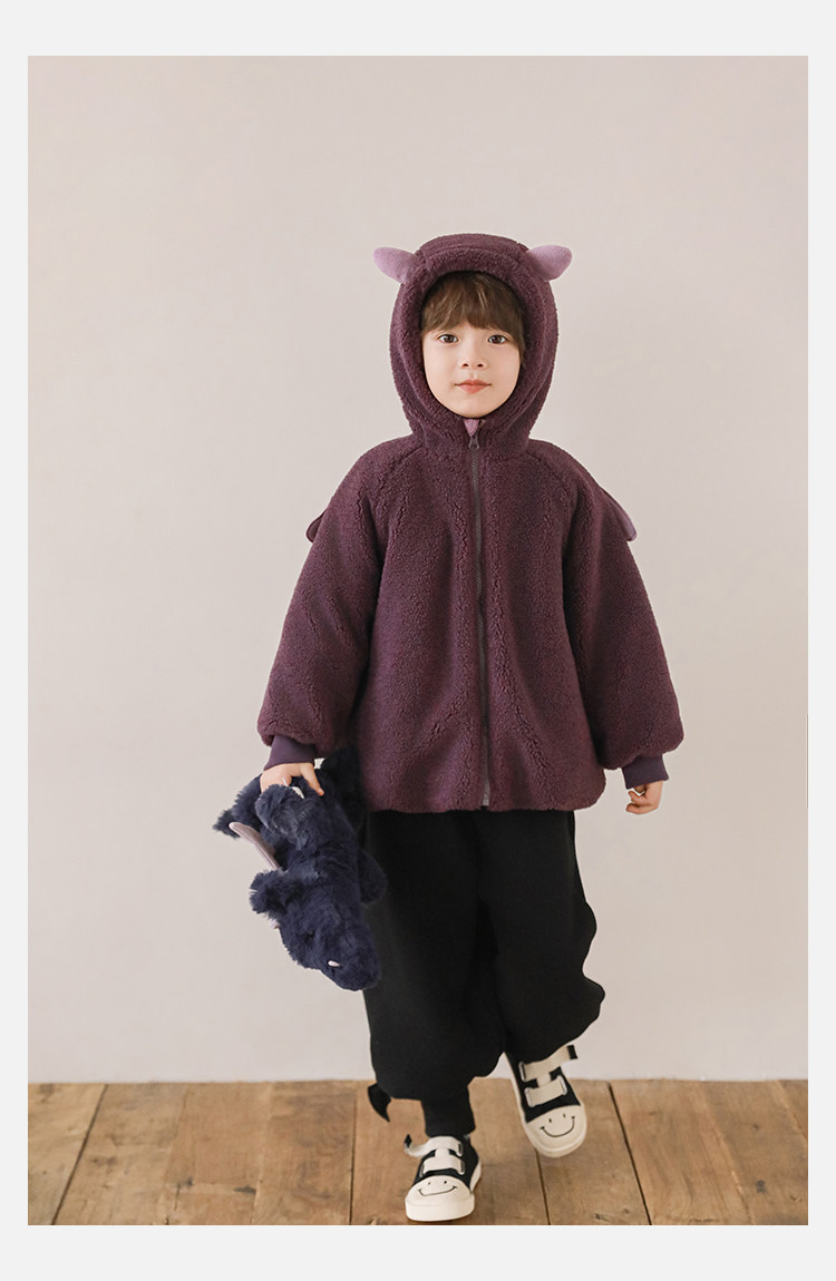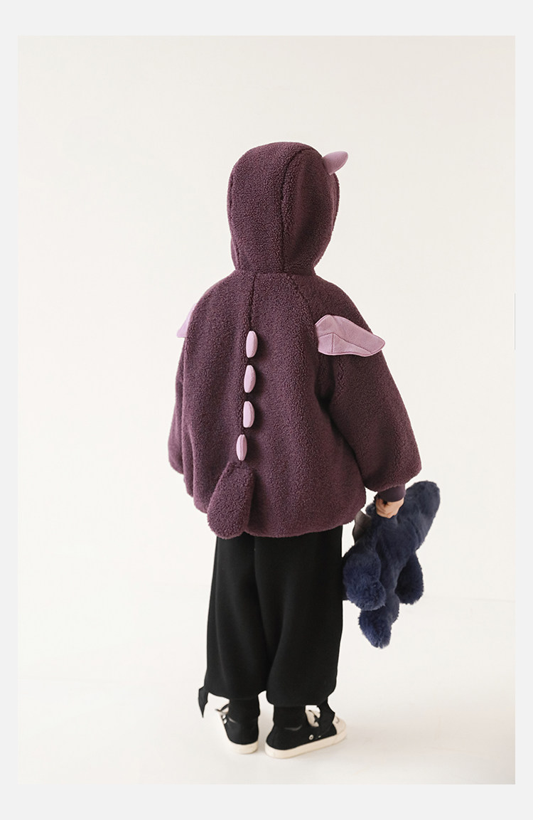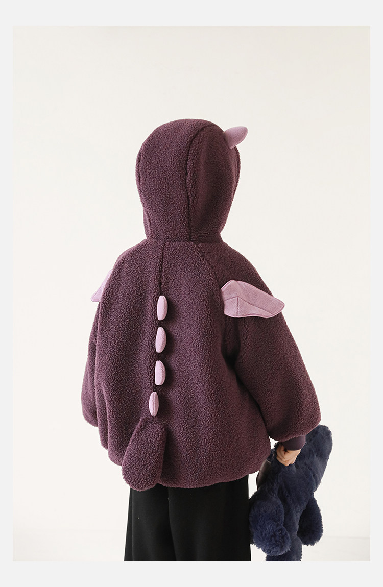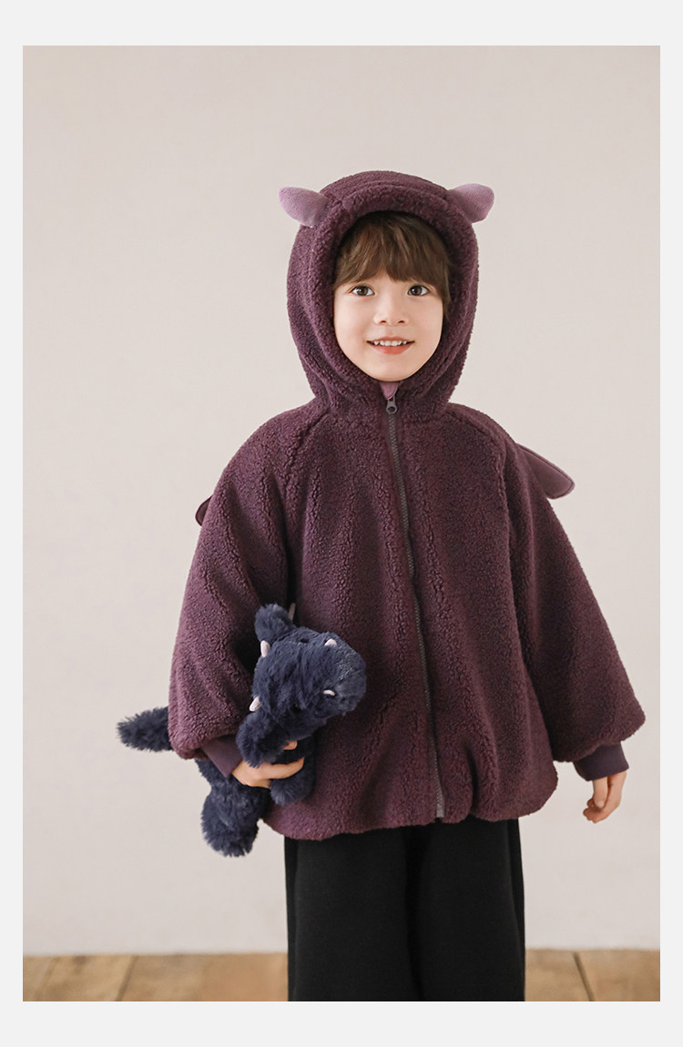 Wulibu Yinan 2025 새로운 스타일의 작은 공룡뿔 날개 후드 플러시 재킷 겨울 따뜻한 두꺼운 상의