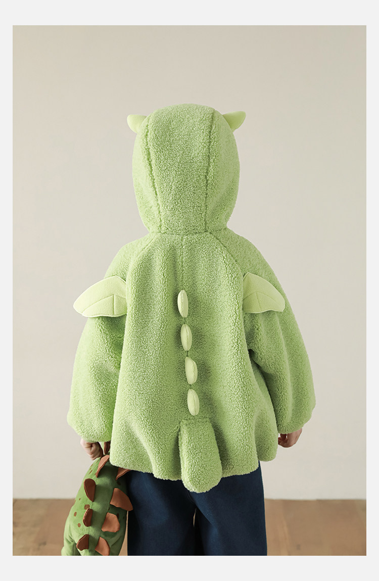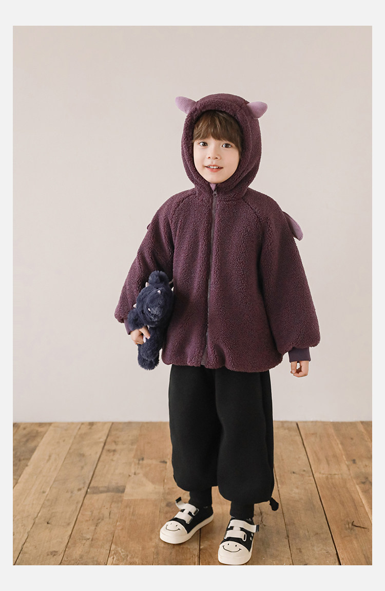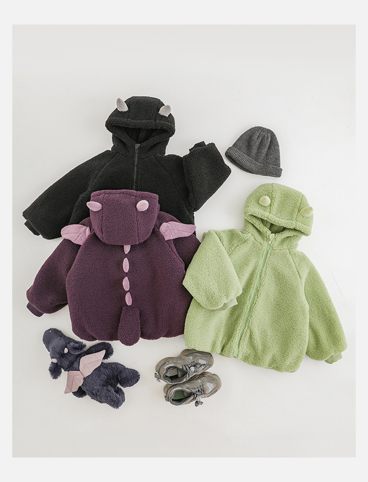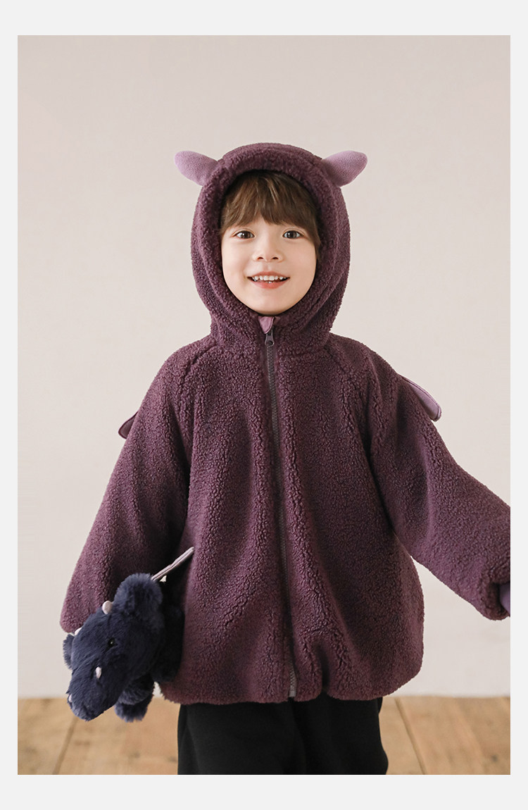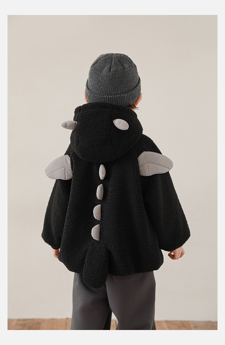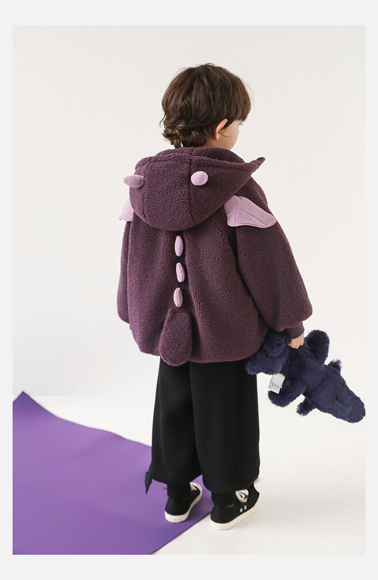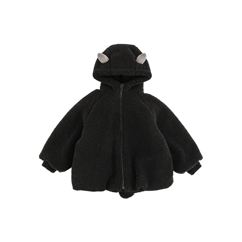 Wulibu Yinan 2025 새로운 스타일의 작은 공룡뿔 날개 후드 플러시 재킷 겨울 따뜻한 두꺼운 상의