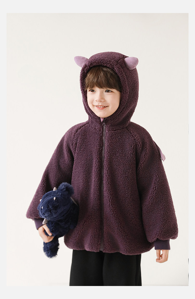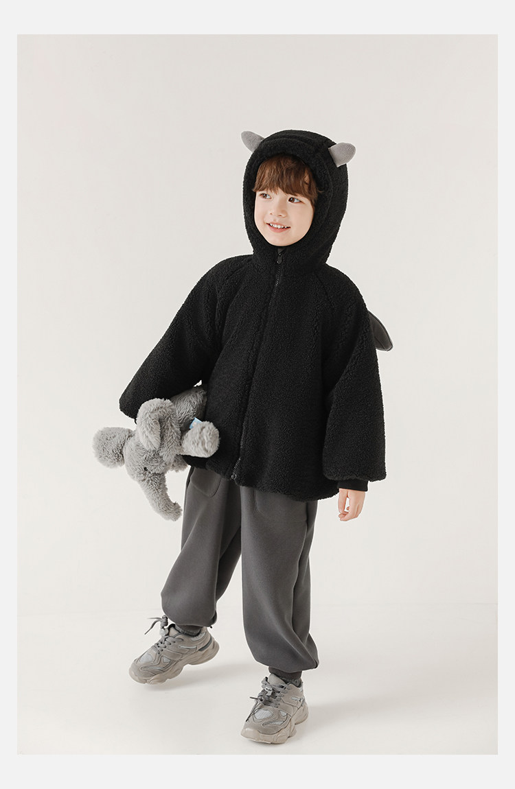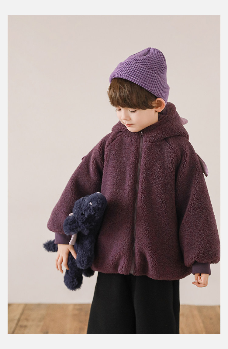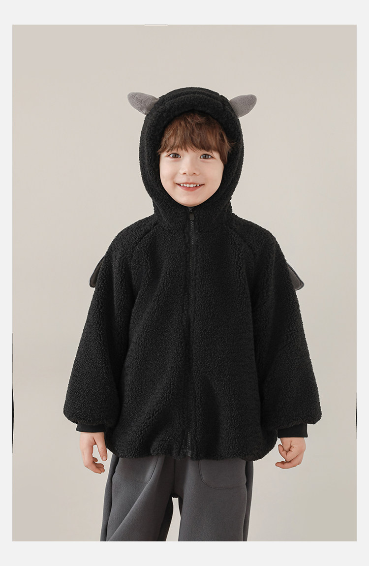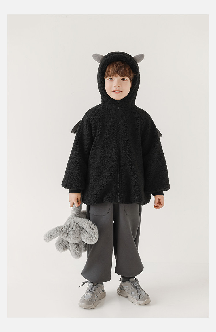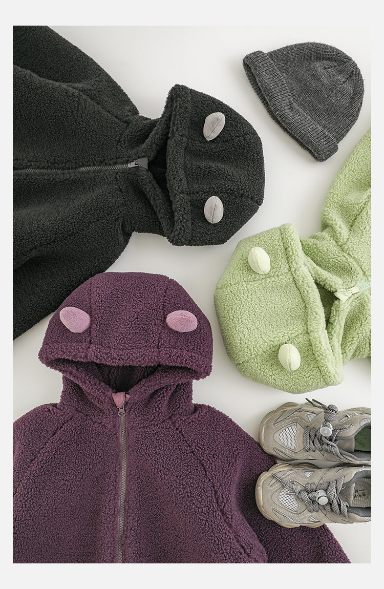 Wulibu Yinan 2025 새로운 스타일의 작은 공룡뿔 날개 후드 플러시 재킷 겨울 따뜻한 두꺼운 상의