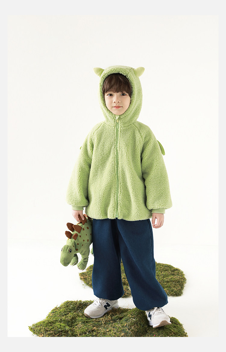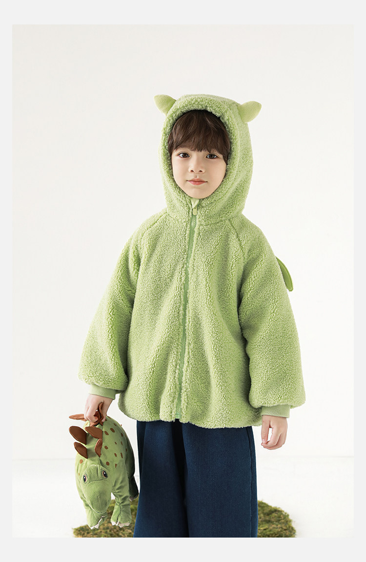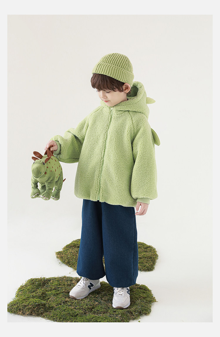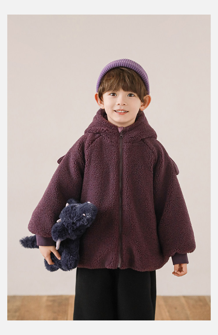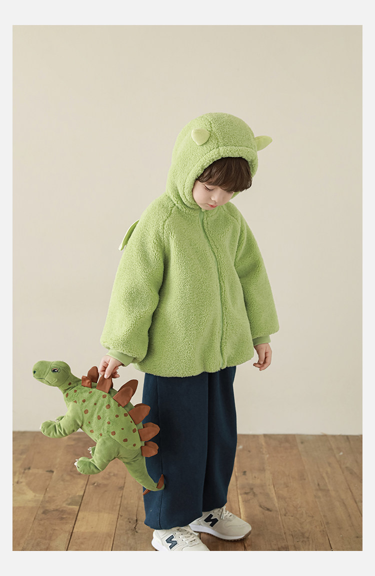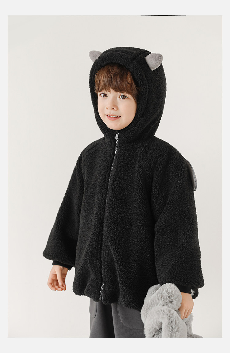 Wulibu Yinan 2025 새로운 스타일의 작은 공룡뿔 날개 후드 플러시 재킷 겨울 따뜻한 두꺼운 상의