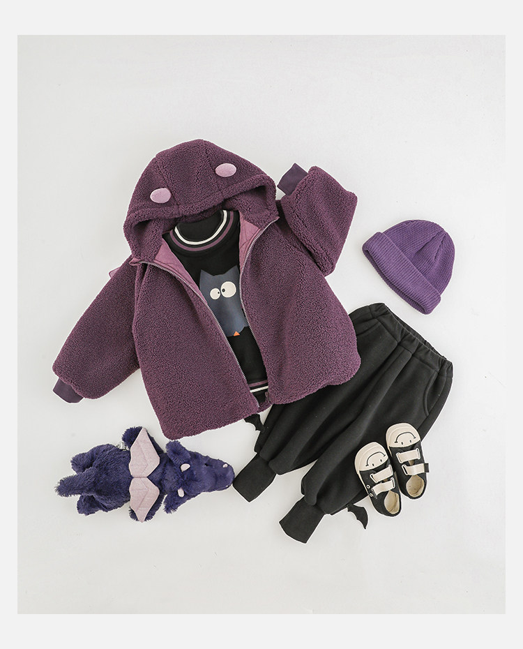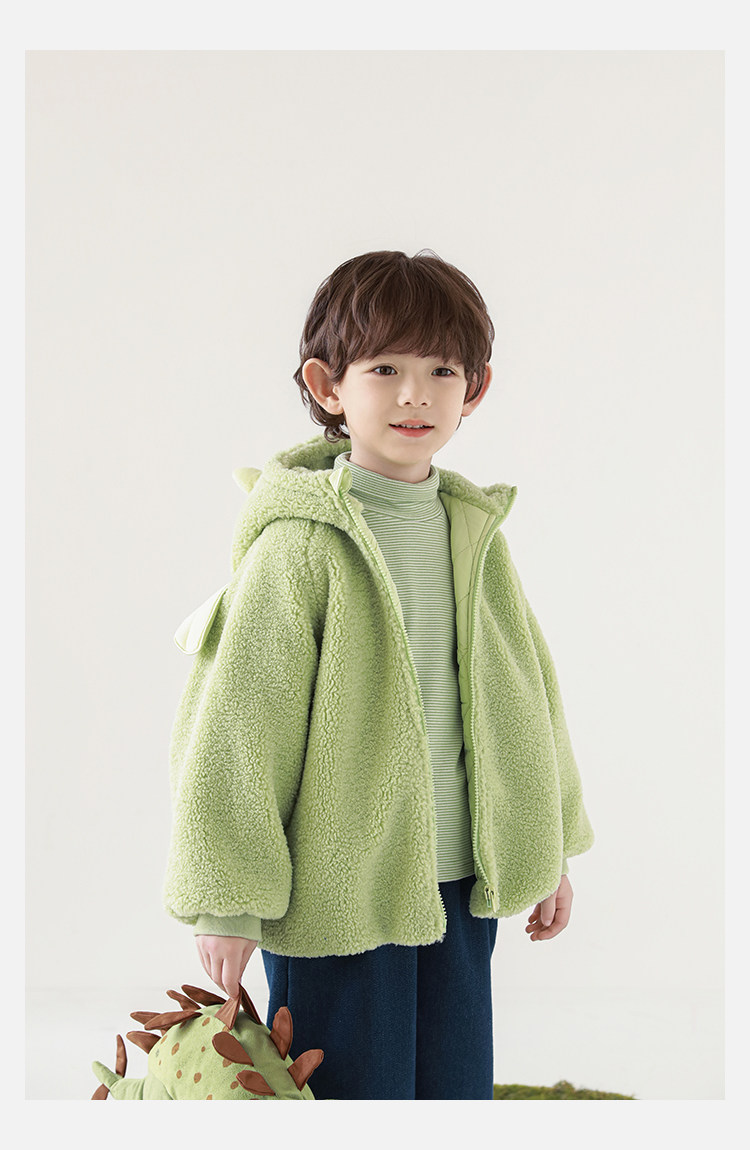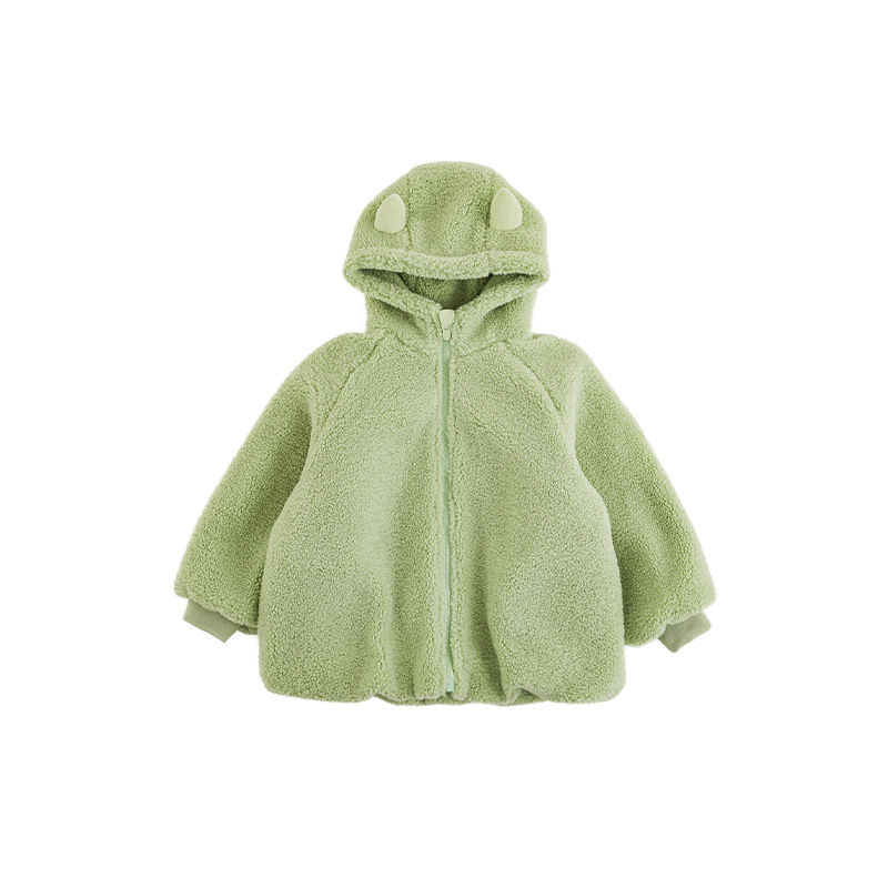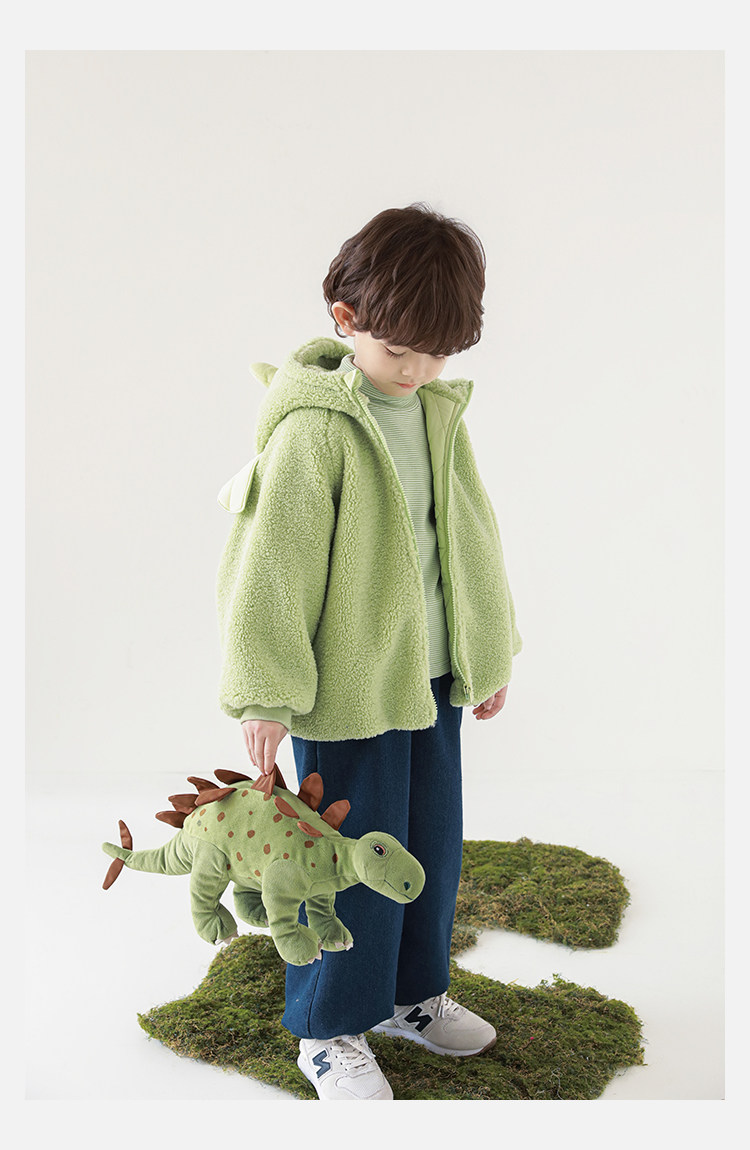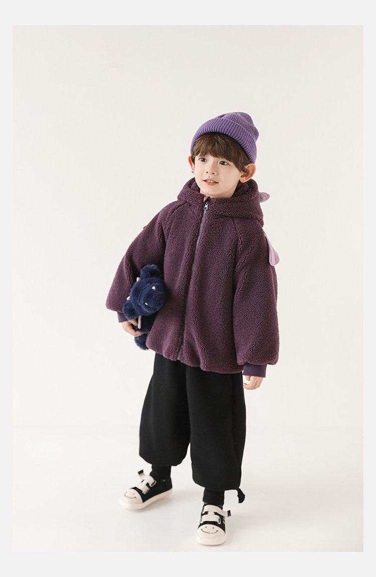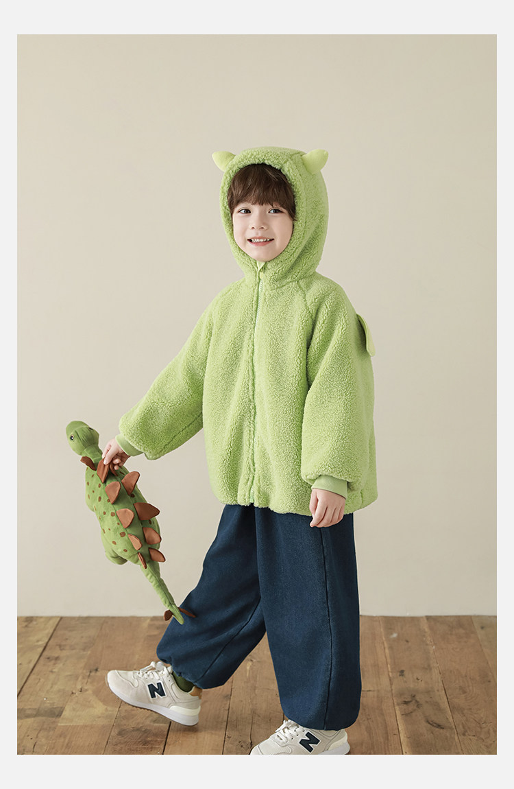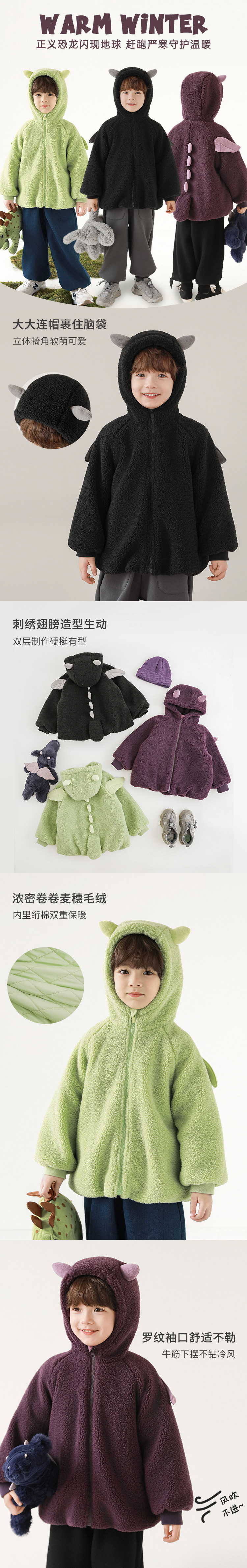 Wulibu Yinan 2025 새로운 스타일의 작은 공룡뿔 날개 후드 플러시 재킷 겨울 따뜻한 두꺼운 상의