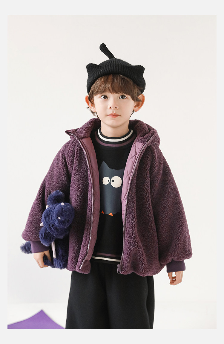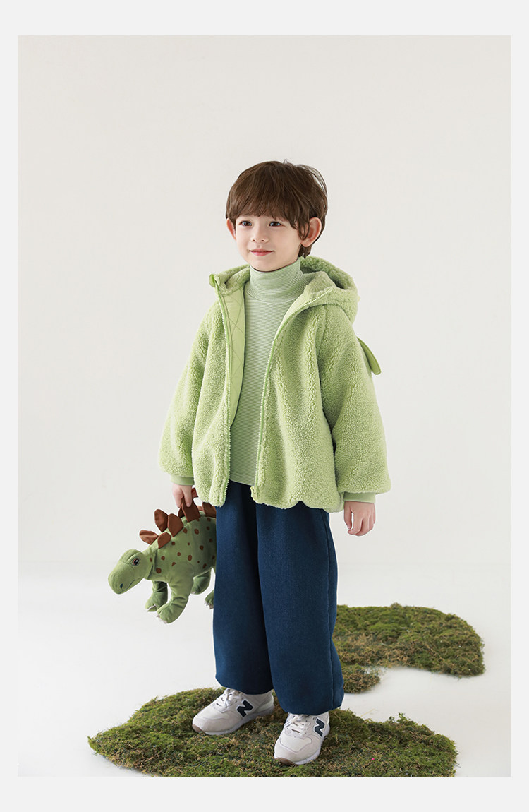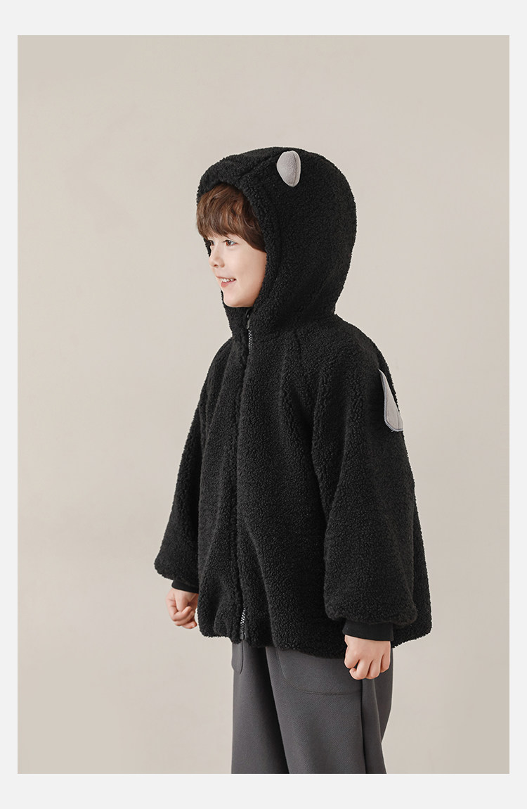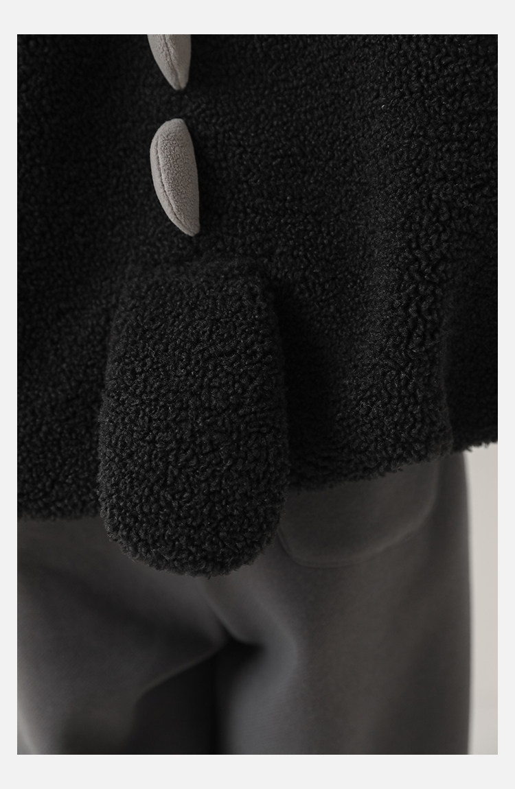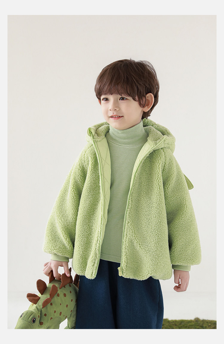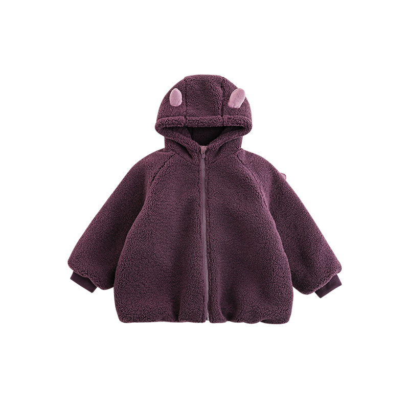Wulibu Yinan 2025 새로운 스타일의 작은 공룡뿔 날개 후드 플러시 재킷 겨울 따뜻한 두꺼운 상의