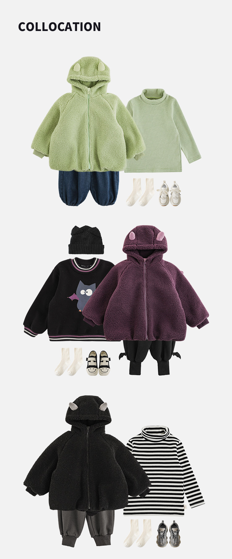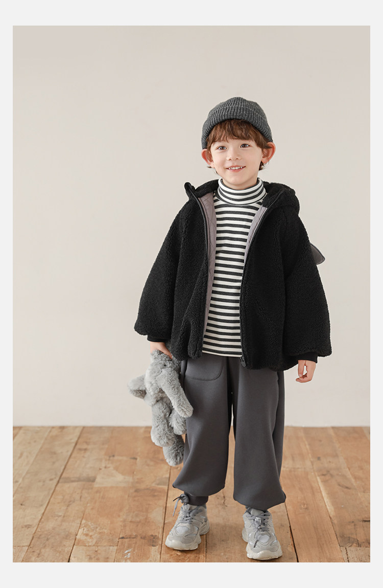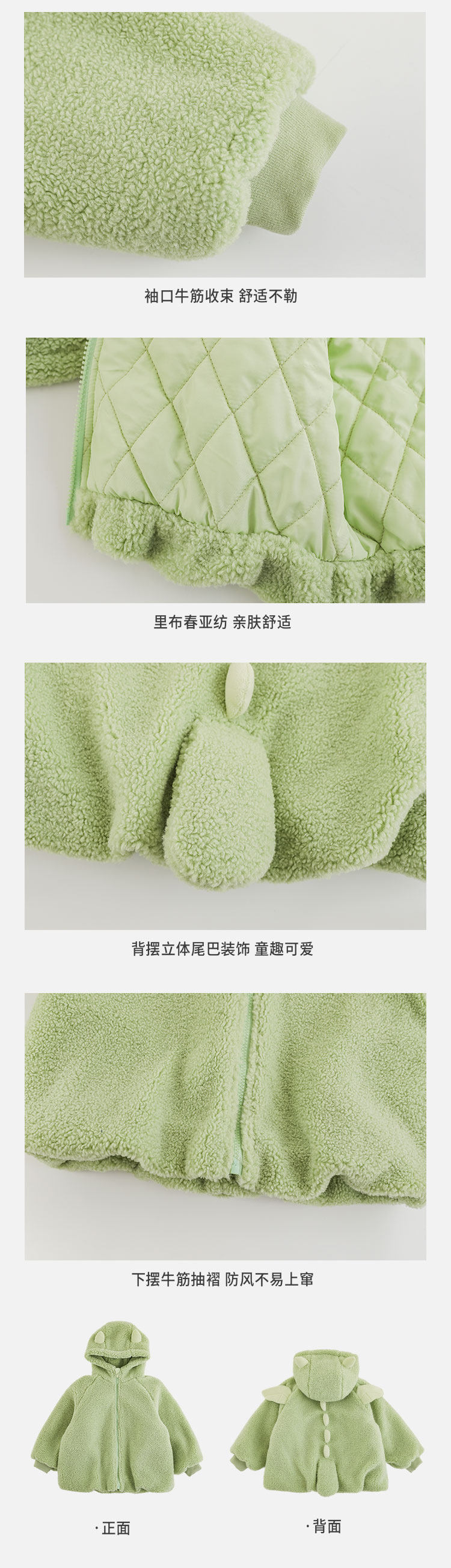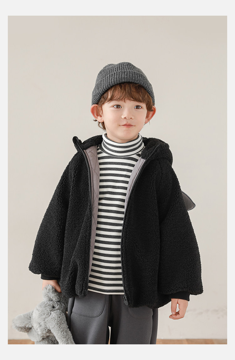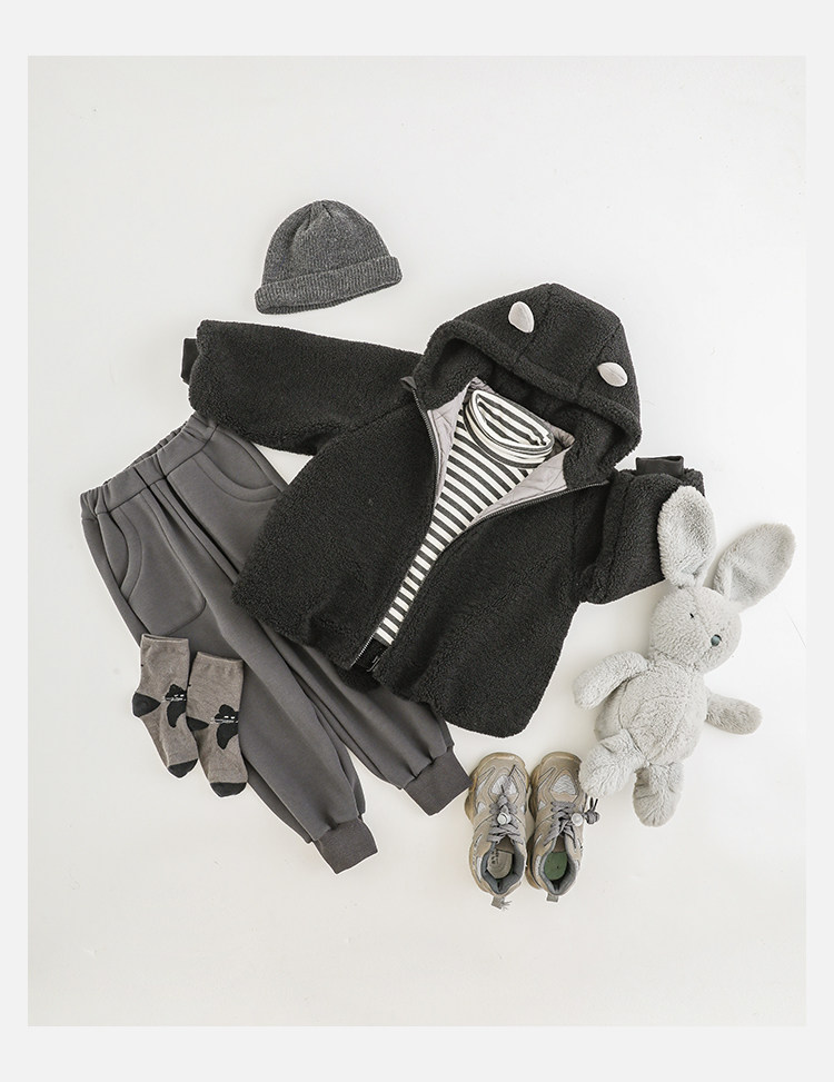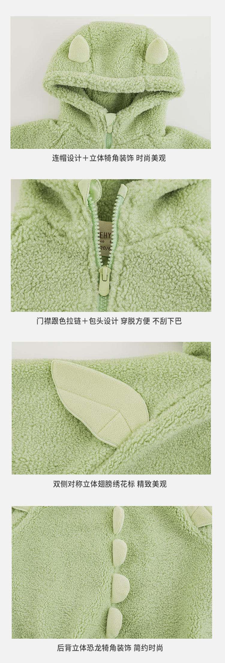 Wulibu Yinan 2025 새로운 스타일의 작은 공룡뿔 날개 후드 플러시 재킷 겨울 따뜻한 두꺼운 상의