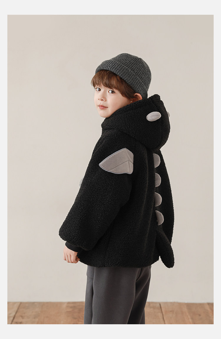 Wulibu Yinan 2025 새로운 스타일의 작은 공룡뿔 날개 후드 플러시 재킷 겨울 따뜻한 두꺼운 상의스토어 가기