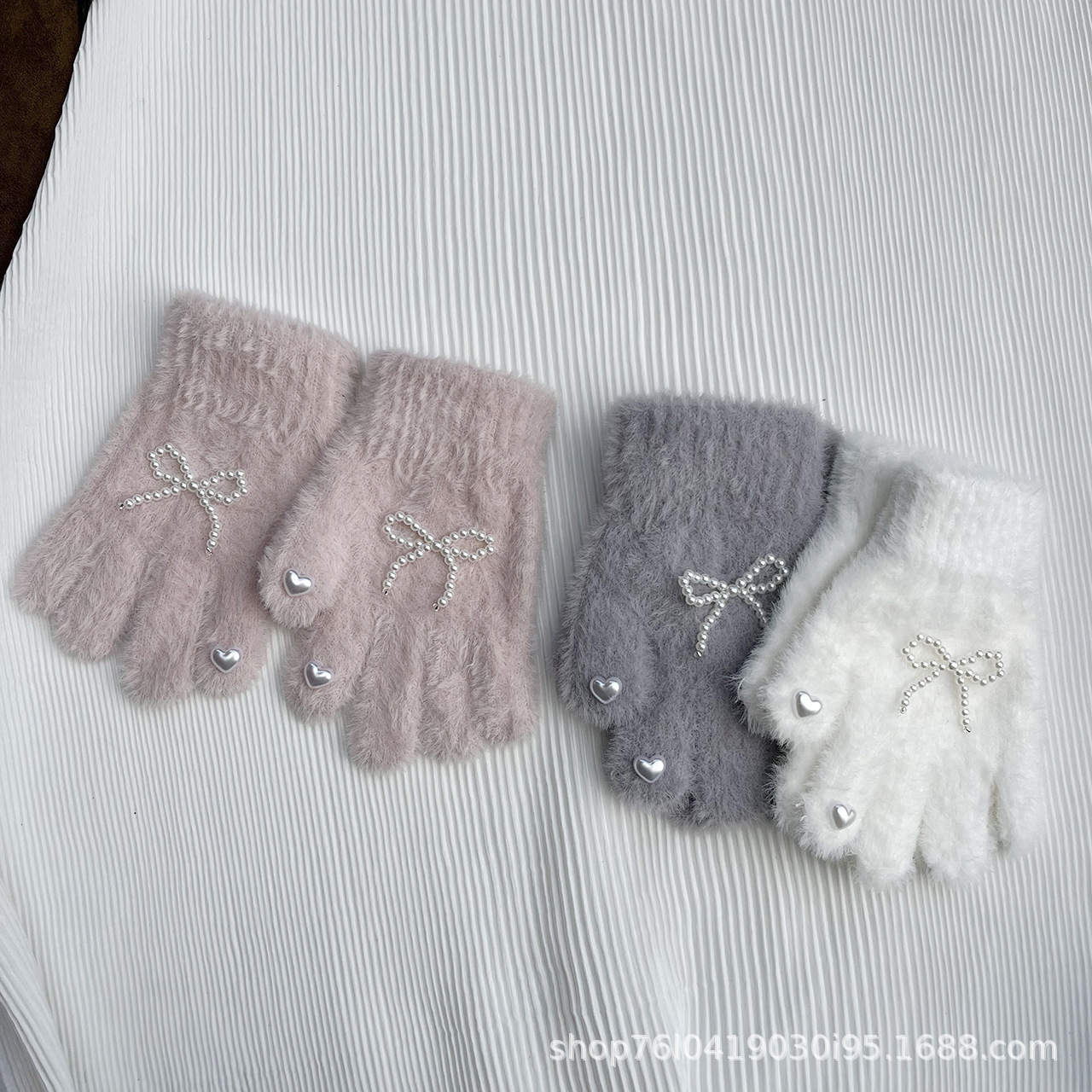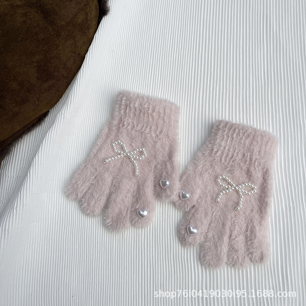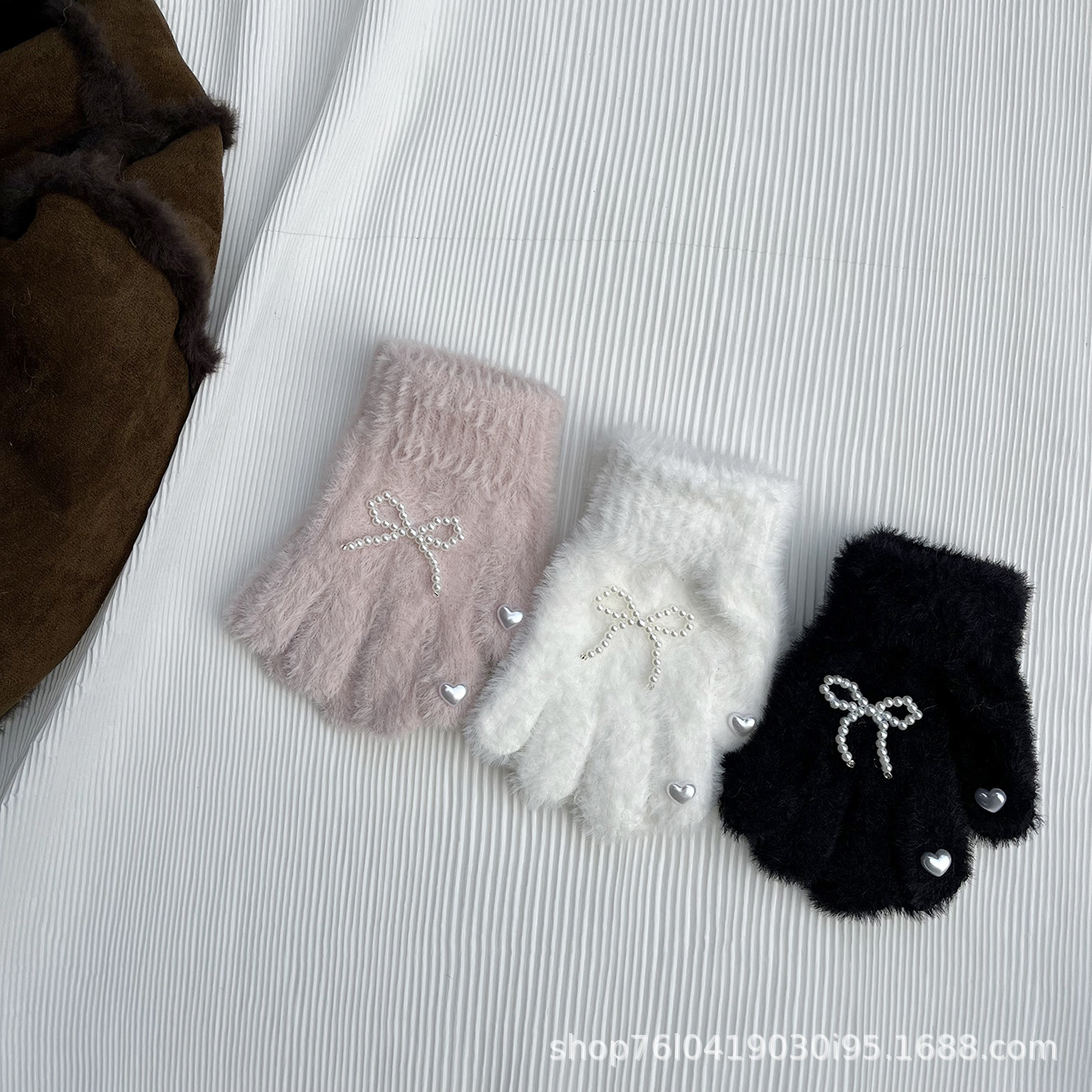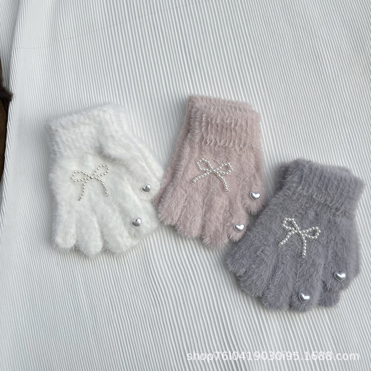 봉제 어린이 장갑 여성의 가을과 겨울 두꺼운 야외 사이클링 따뜻한 부드러운 왁스 소녀 진주 활 니트 장갑