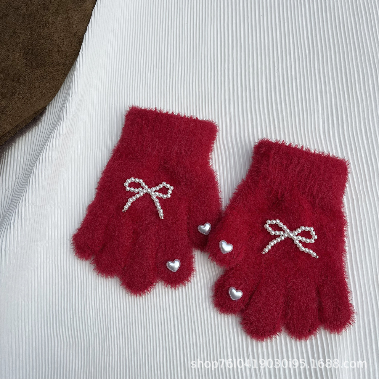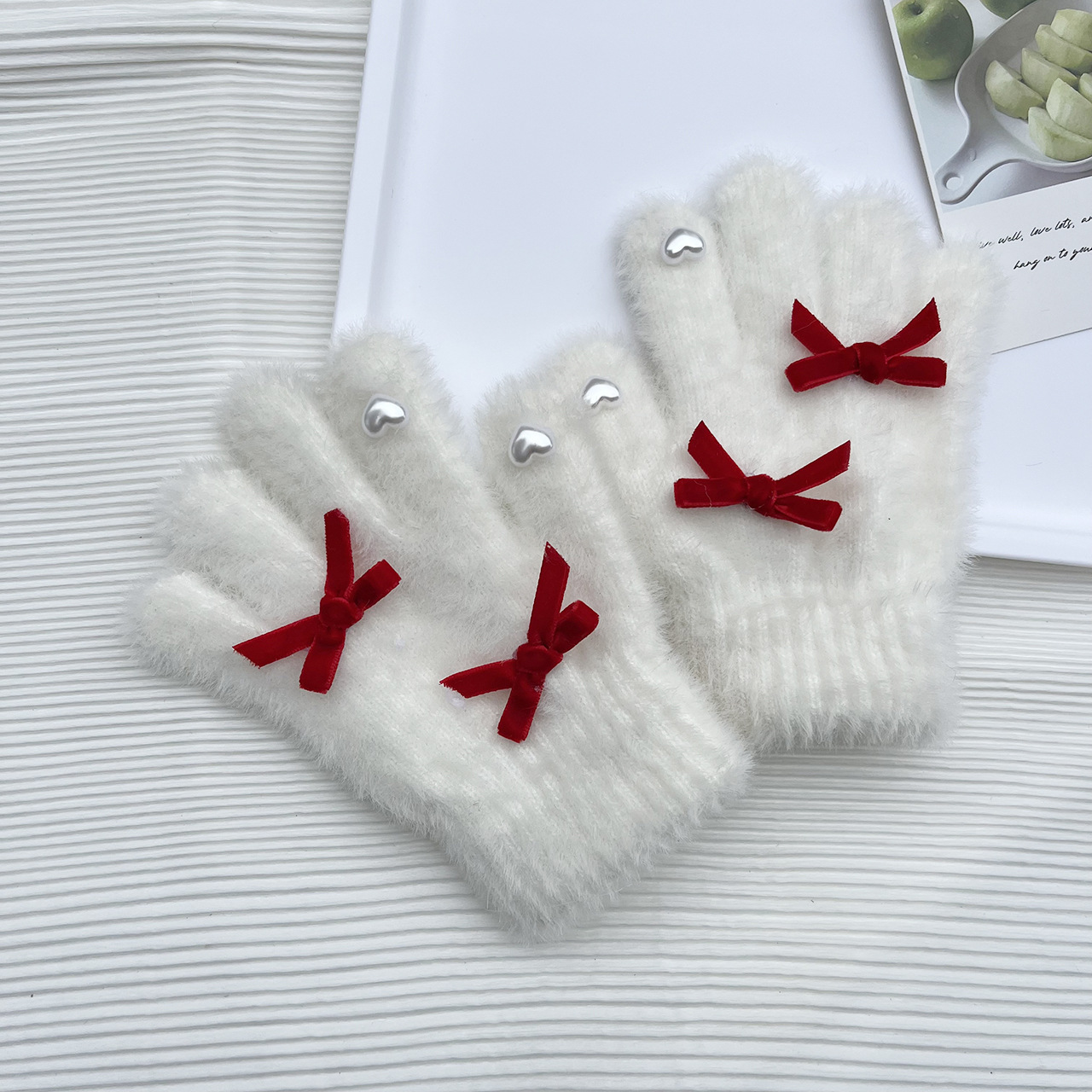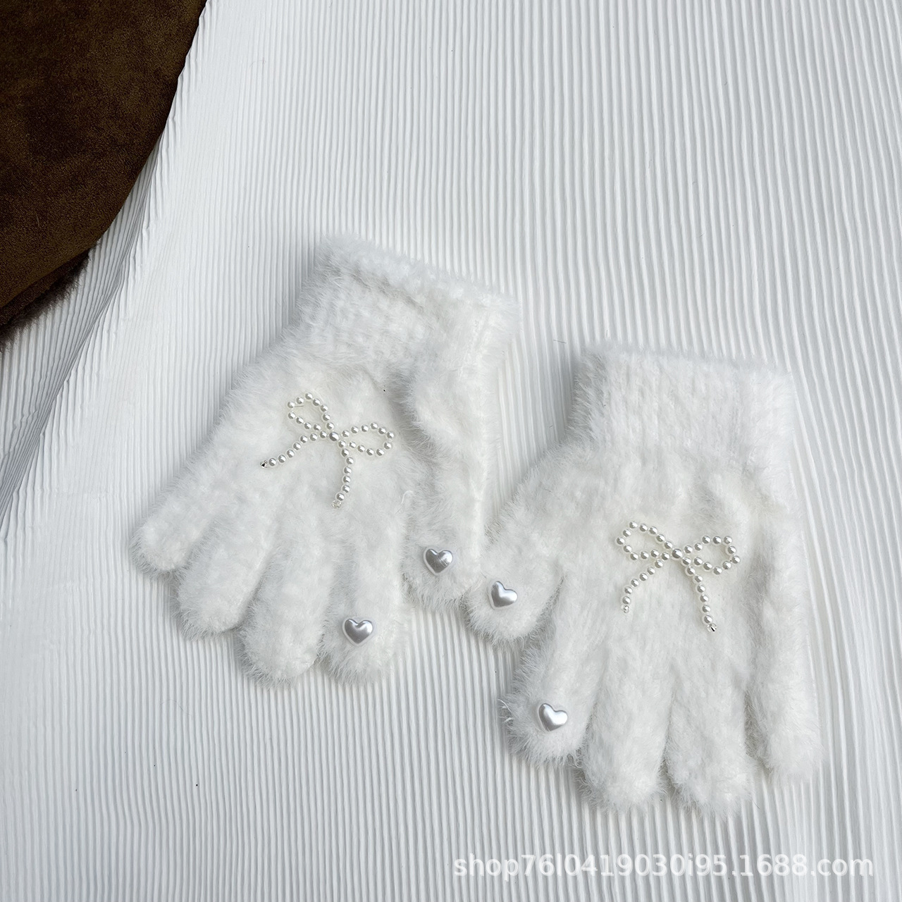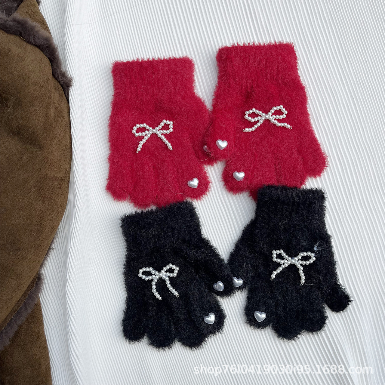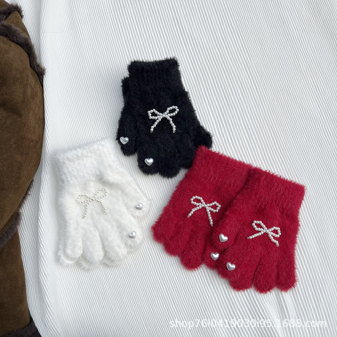 봉제 어린이 장갑 여성의 가을과 겨울 두꺼운 야외 사이클링 따뜻한 부드러운 왁스 소녀 진주 활 니트 장갑