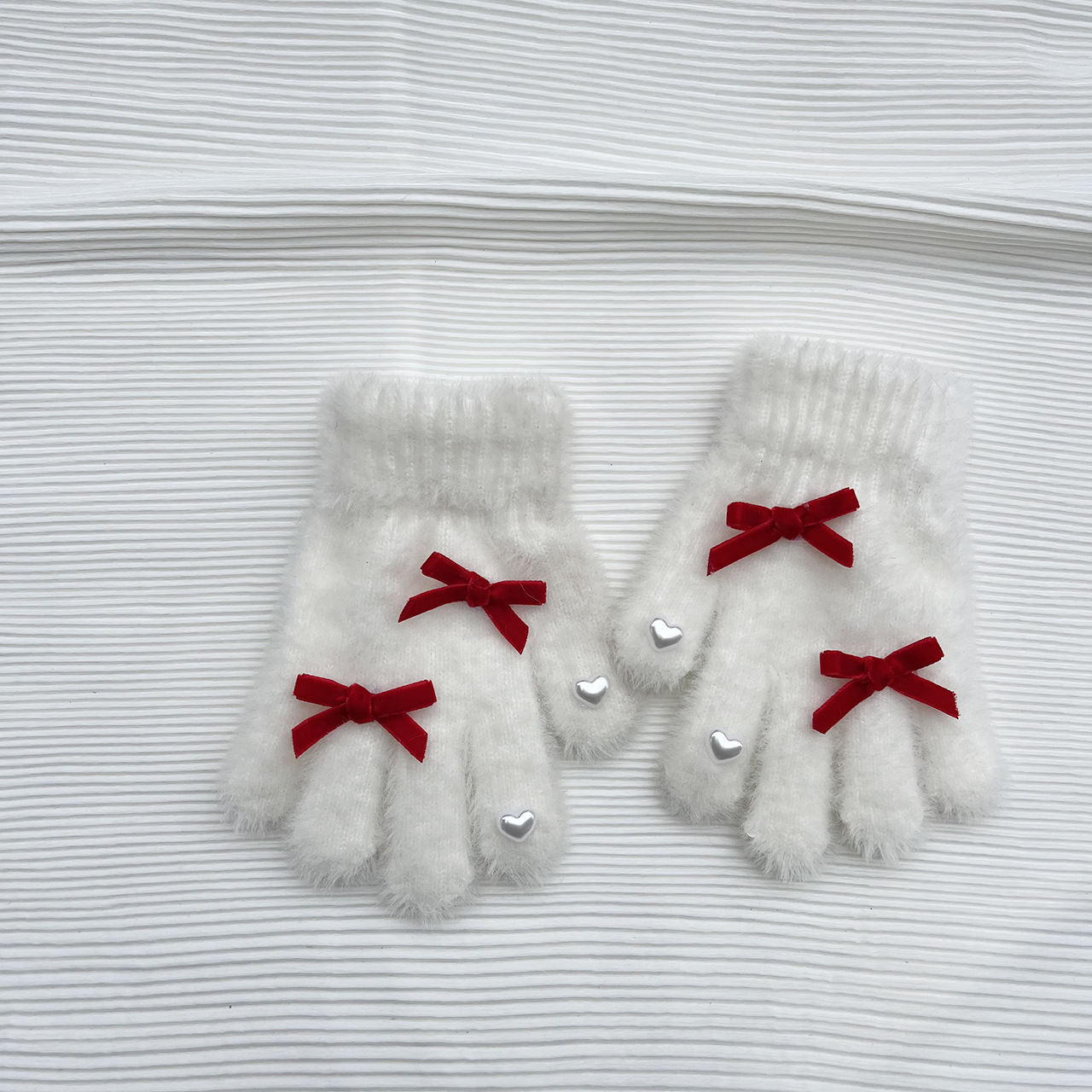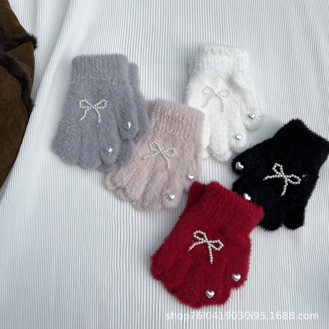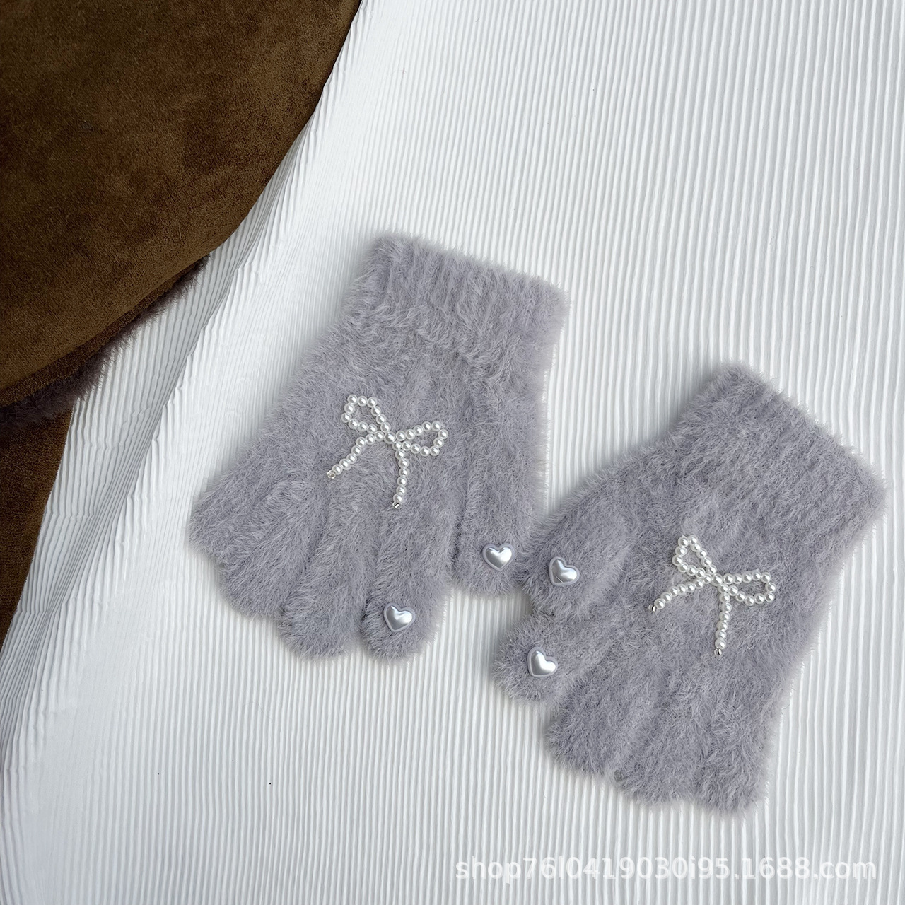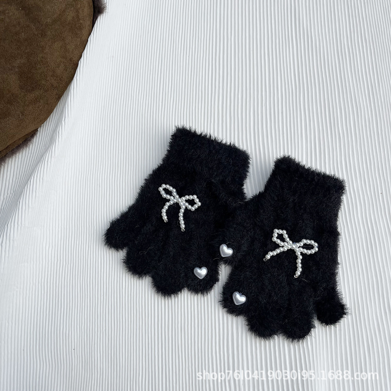 봉제 어린이 장갑 여성의 가을과 겨울 두꺼운 야외 사이클링 따뜻한 부드러운 왁스 소녀 진주 활 니트 장갑