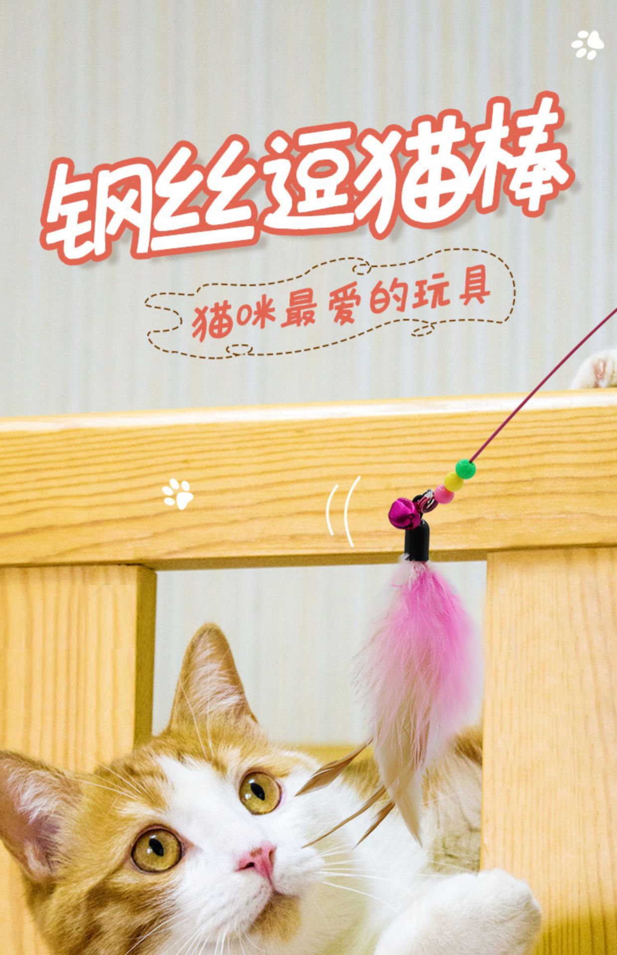 고양이 장난감 고양이 스틱 스틸 와이어 컬러 깃털 벨 고양이 장난감 애완 동물 고양이 훈련 고양이 스틱 인터랙티브