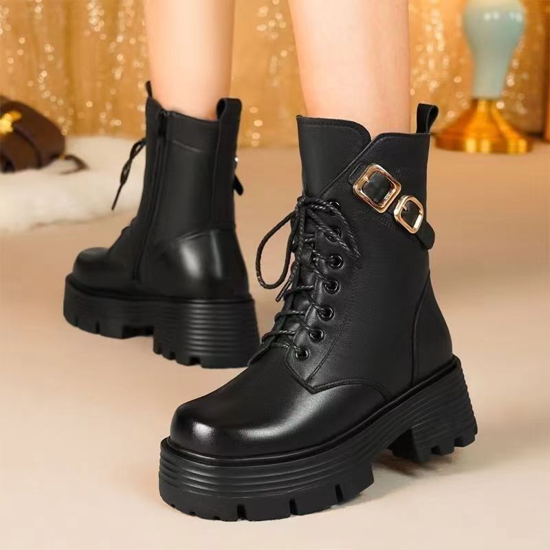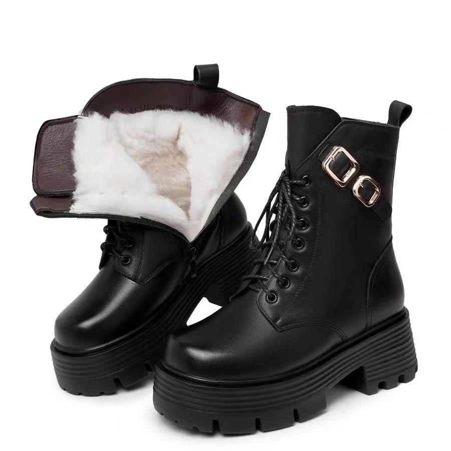 두꺼운 밑창 강화 마틴 부츠 여성 신발 큰면 신발 기모 울 짧은 부츠 소프트 가죽 코튼 부츠 모피 하나의 스노우 부츠