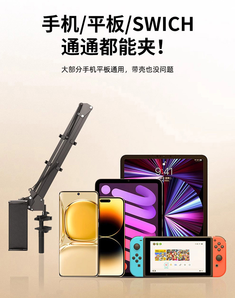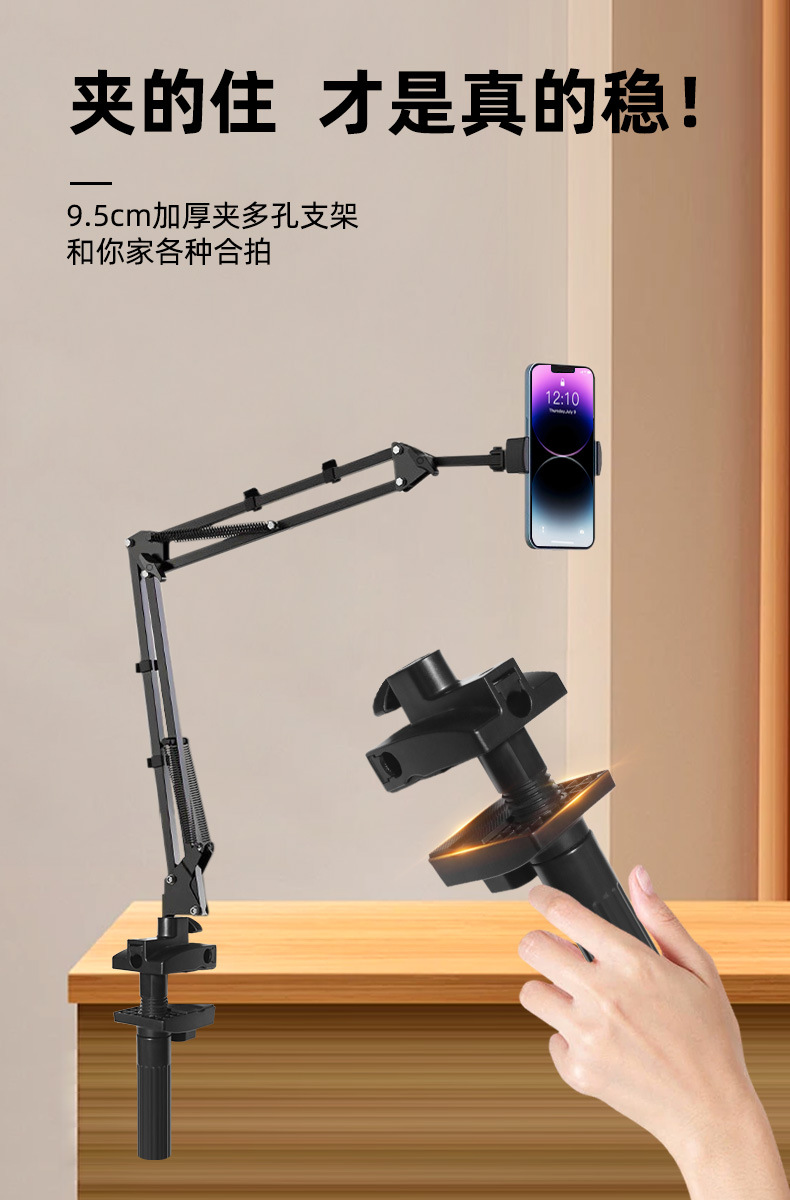 공장 직접 공급 범용 휴대 전화 라이브 방송 브래킷 침대 옆 클램핑 태블릿 금속 브래킷 자유롭게 조정 가능한 캔틸레버 브래킷