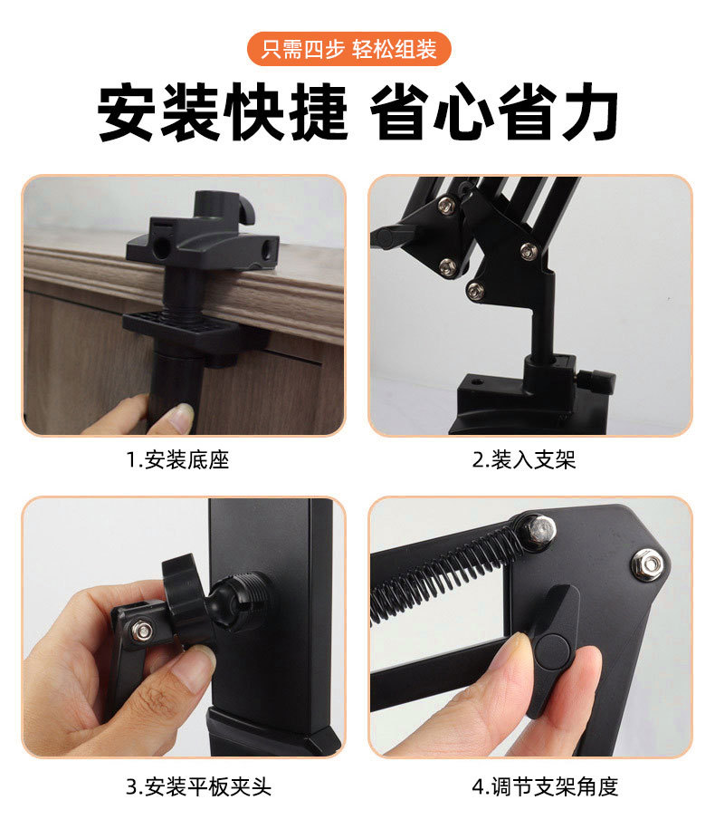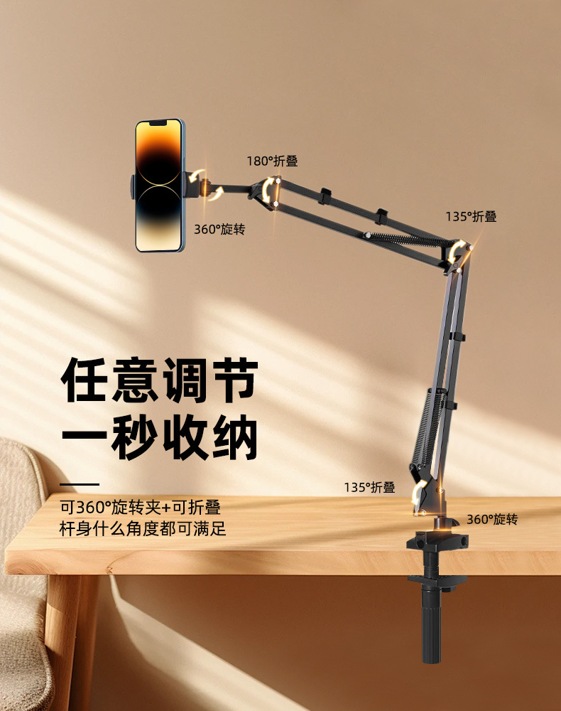공장 직접 공급 범용 휴대 전화 라이브 방송 브래킷 침대 옆 클램핑 태블릿 금속 브래킷 자유롭게 조정 가능한 캔틸레버 브래킷스토어 가기
