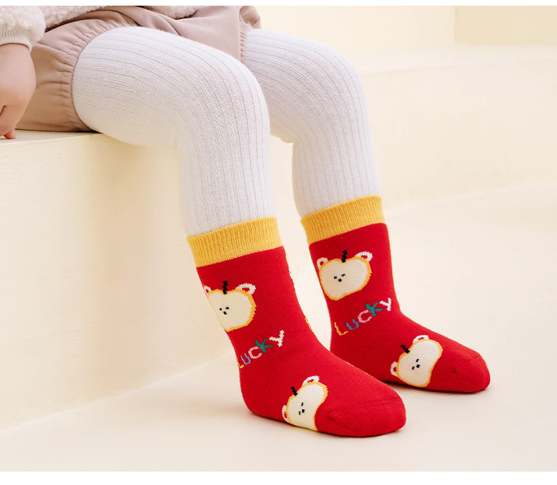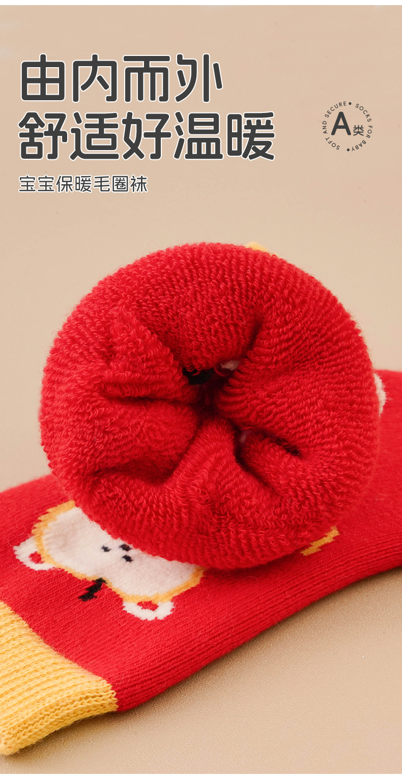 아기 양말 겨울 새로운 두꺼운 따뜻한 테리 붉은 새해 신생아 생일 어린이 양말