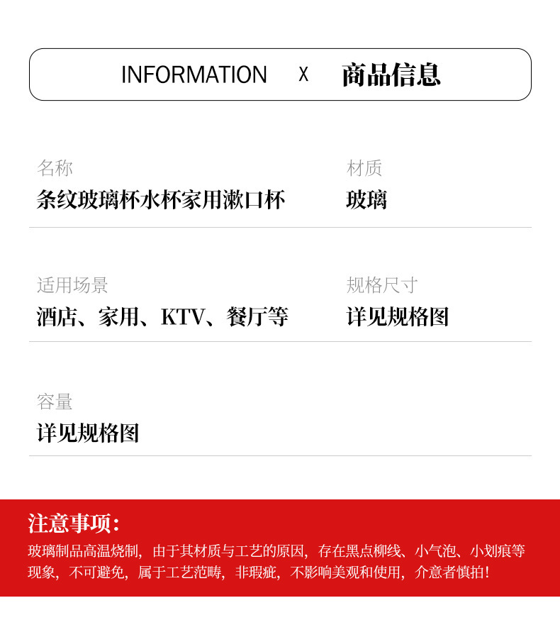 Mrs. Jane 300ml 줄무늬 유리 컵 B & B 호텔 호텔 유리 구강 세척 컵 칫솔질 및 세척 컵스토어 가기