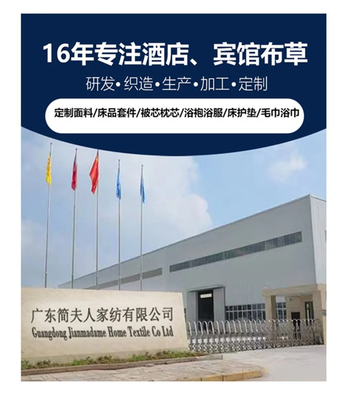 广州简夫人酒店用品有限公司以从事制造业为主,经营范围:酒店四件套 ,提供高品质的酒店床上用品, 酒店一次性洗漱用品 :生产并销售酒店专用一次性牙刷、牙膏、洗发水、沐浴露、香皂等洗漱用品, 酒店拖鞋与毛巾。
