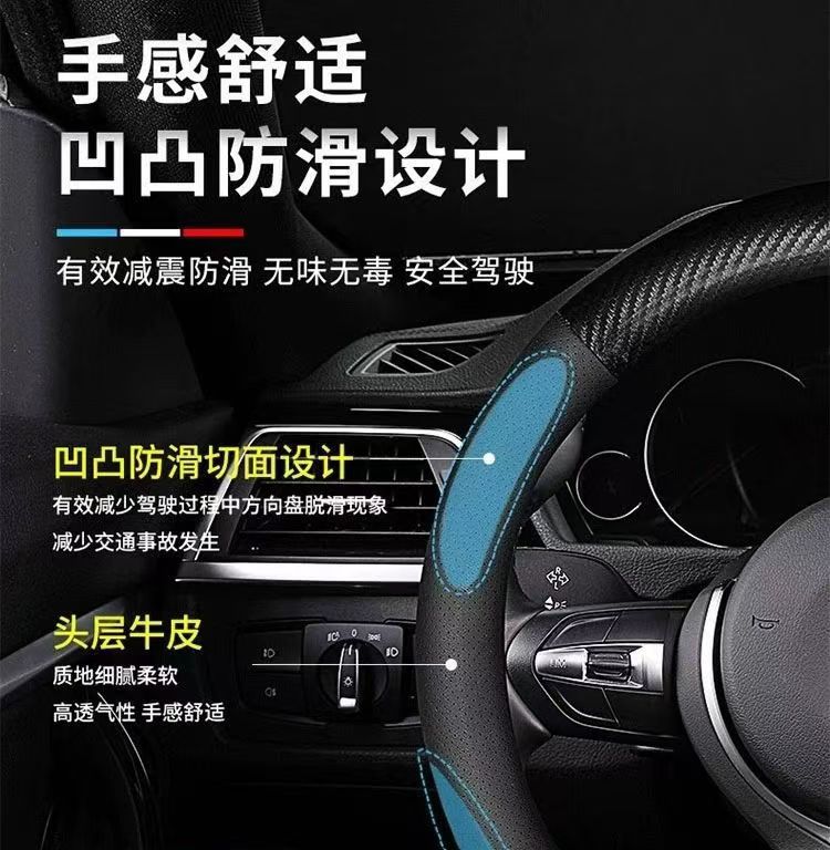 사계절 사용 가능한 신차 핸들 커버, 미끄럼 방지, 내마모성, 땀 흡수성, 탄소 섬유 핸들 커버, 개조스토어 가기