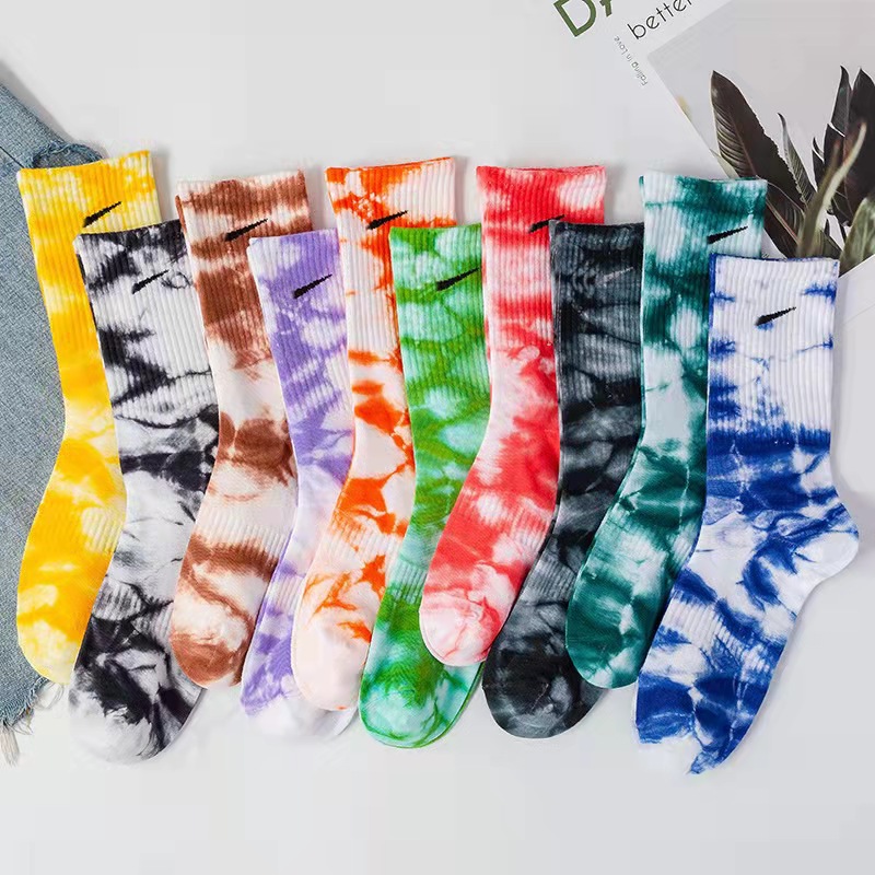 남성용 및 여성용 타이 염색 양말, 긴 면 양말, NK 후크 스포츠 하이탑 인 트렌디 양말, 캔디 컬러 양말
