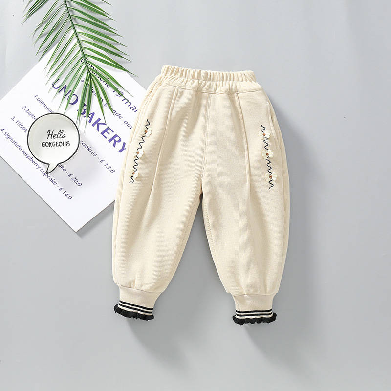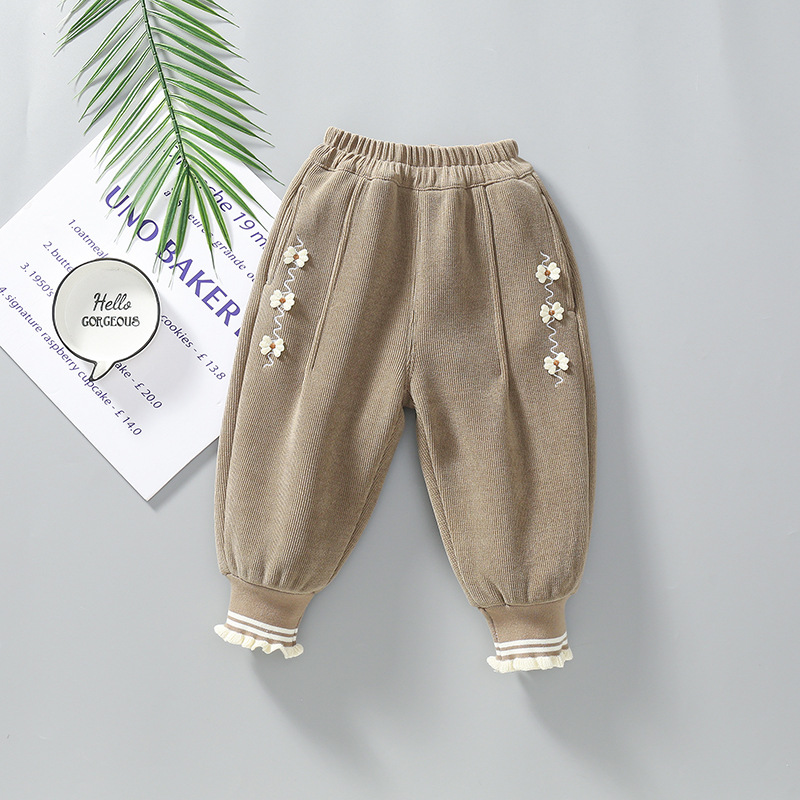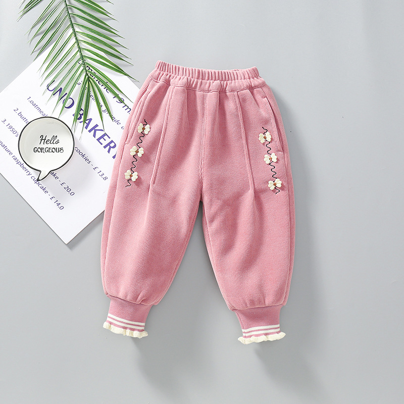 가을과 겨울 외곽을위한 소녀 기모 바지 어린이 원피스 양털 서양식 여성용 아기 운동복 따뜻한 바지 아기 바지 유행