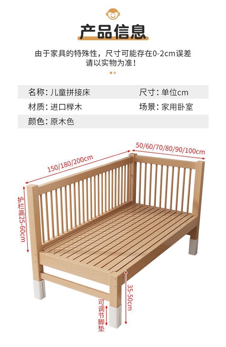 FLE 너도밤 나무 침대 탁자 접합 침대 솔리드 우드 크립 넓은 접합 큰 침대 어린이 침대 침대 접합스토어 가기