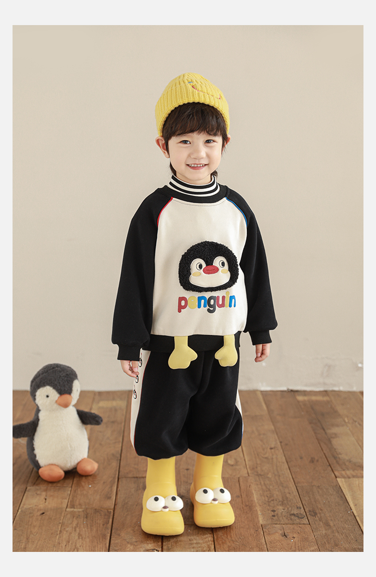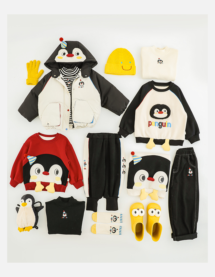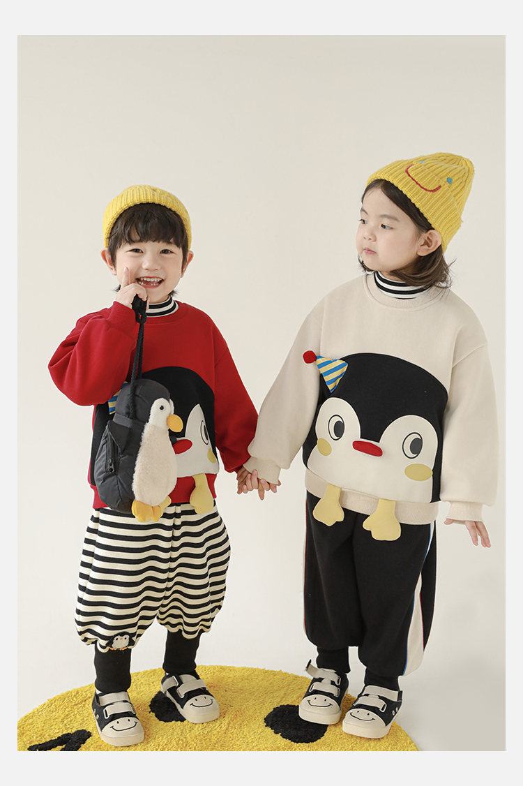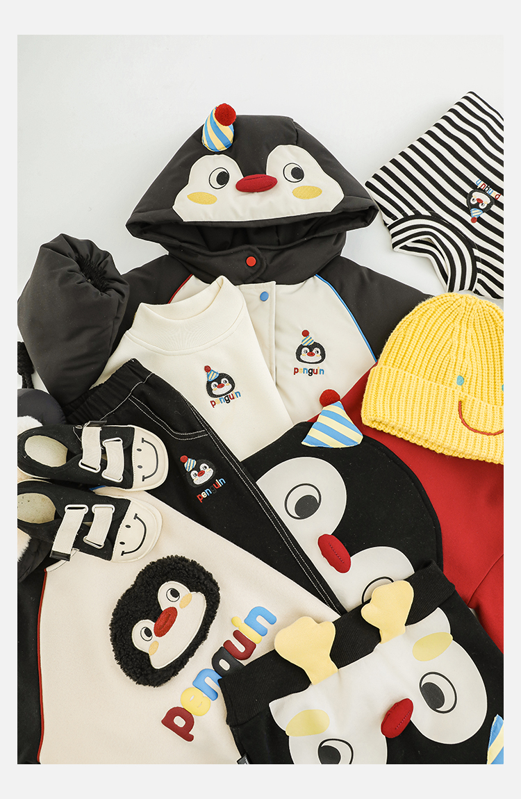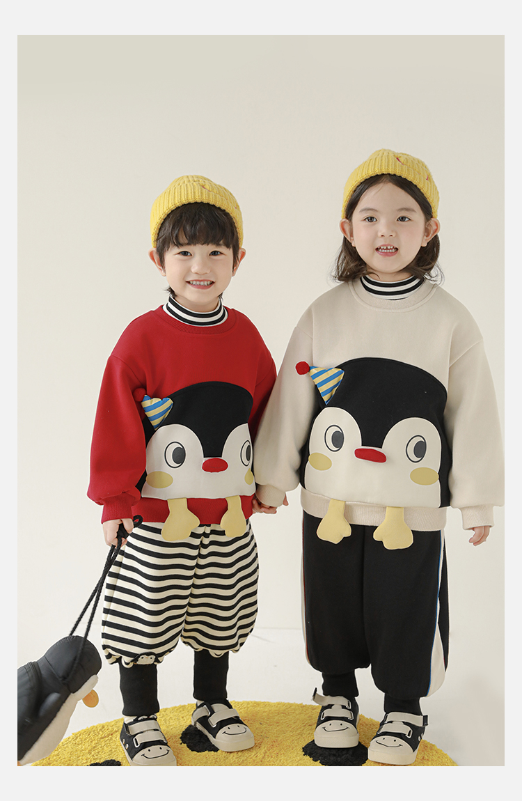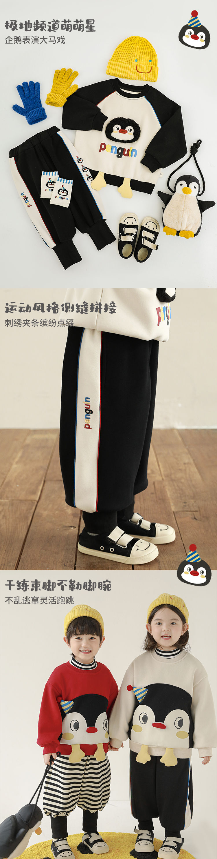 Wulibu Yinan 2025 새로운 만화 펭귄 방풍 레깅스 아동 스포츠 바지 겨울 벨벳 바지스토어 가기
