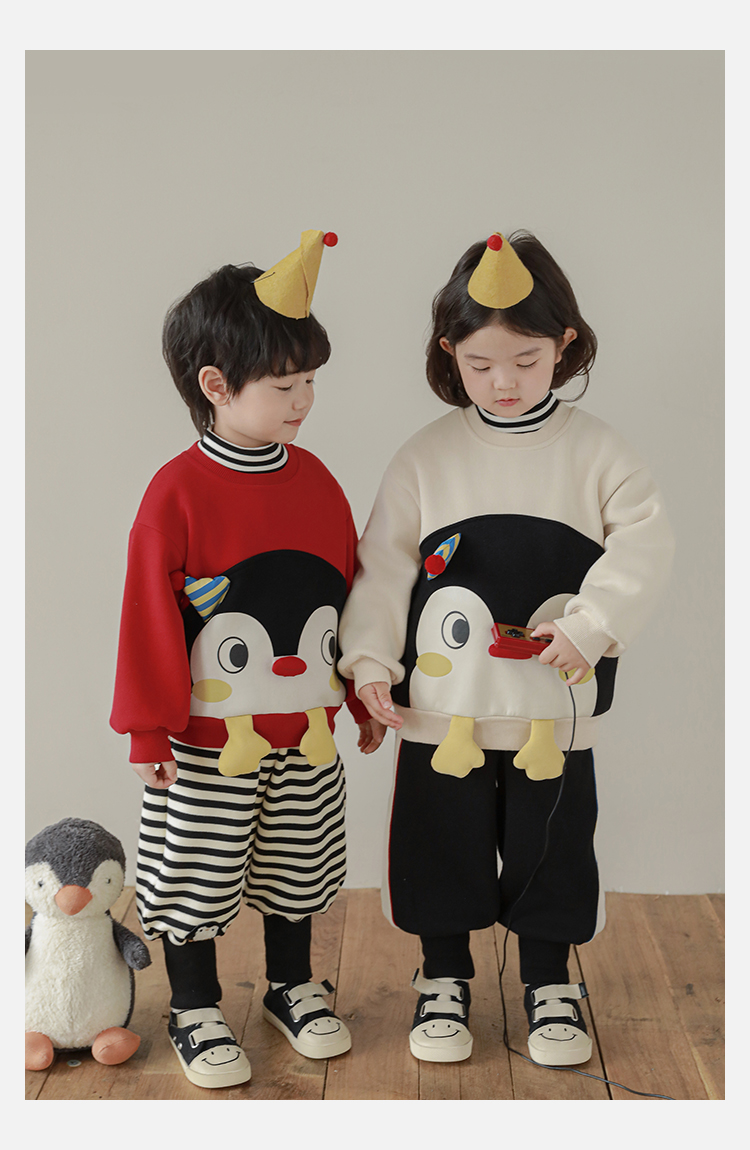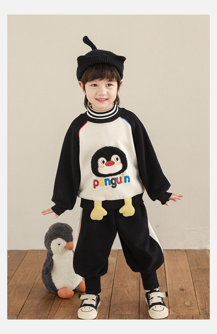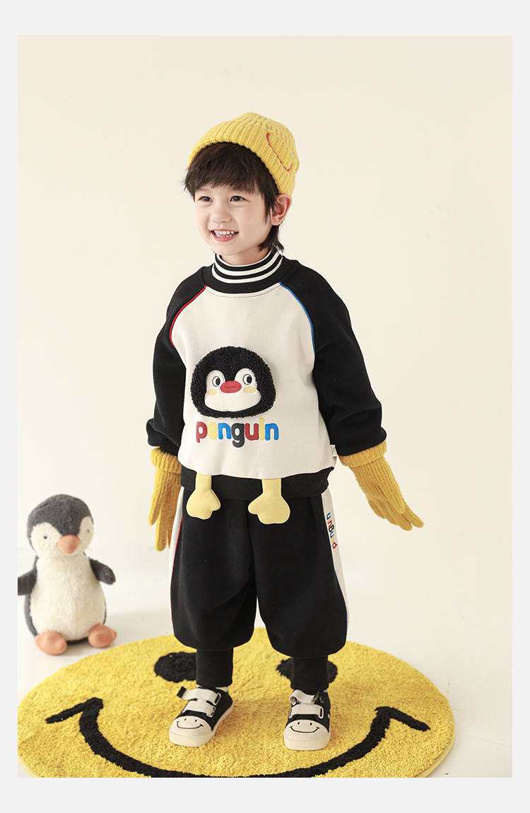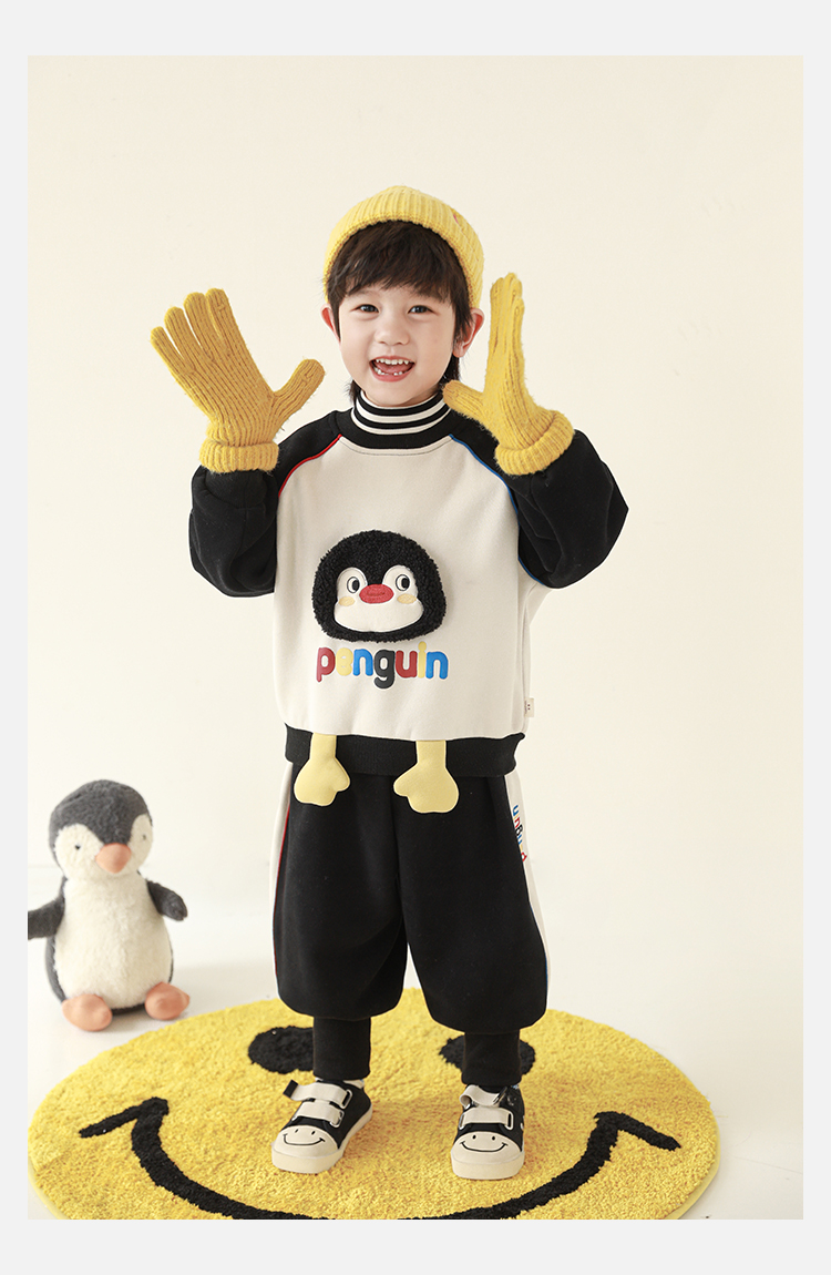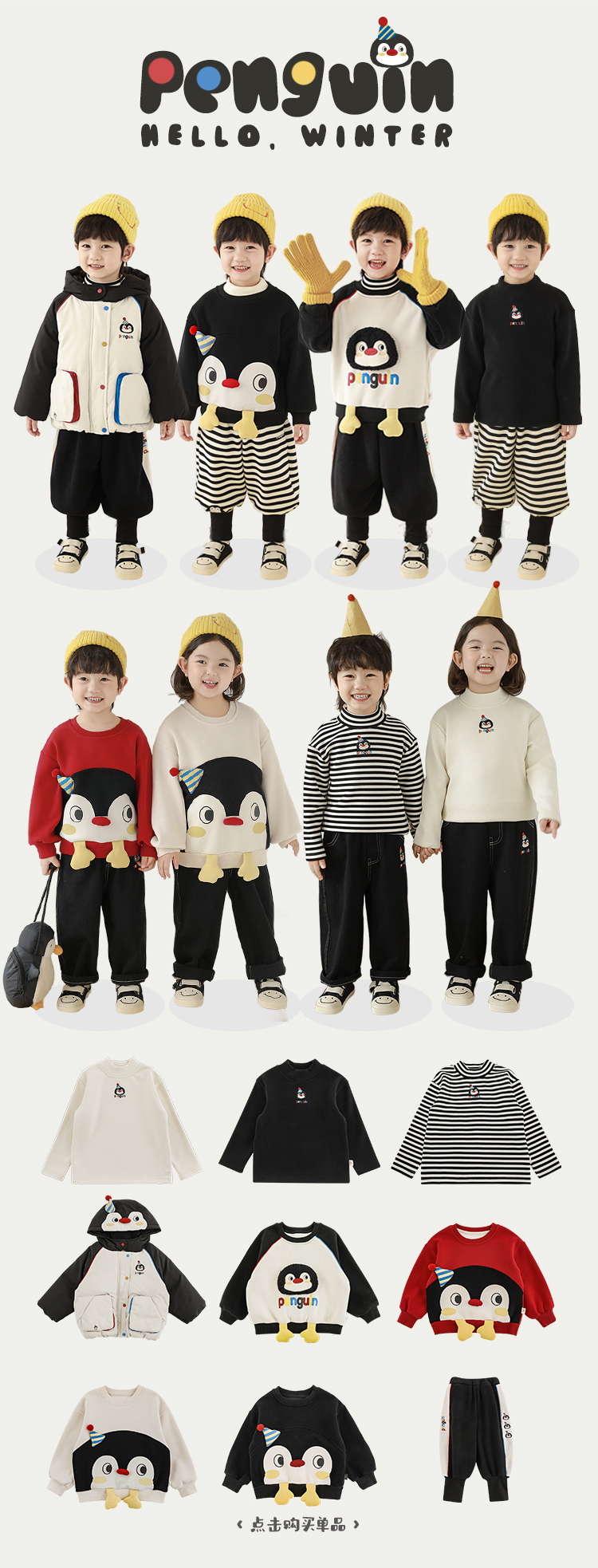 Wulibu Yinan 2025 새로운 만화 펭귄 방풍 레깅스 아동 스포츠 바지 겨울 벨벳 바지스토어 가기