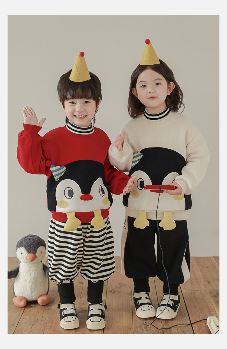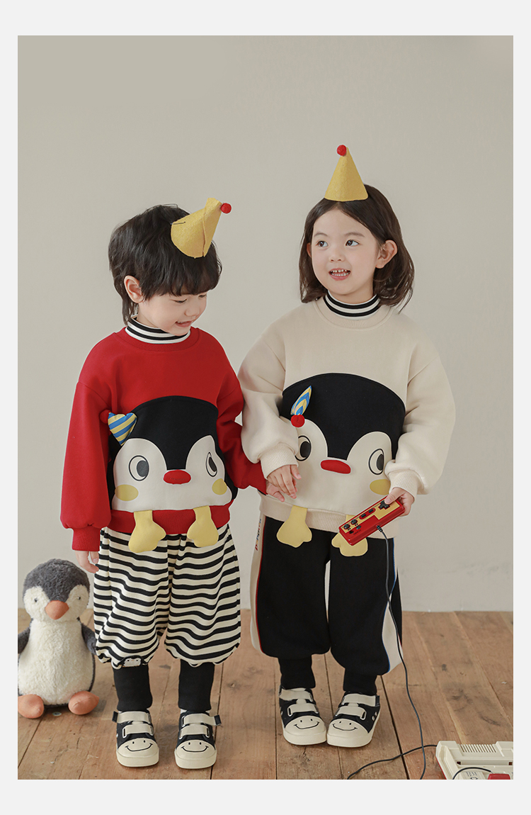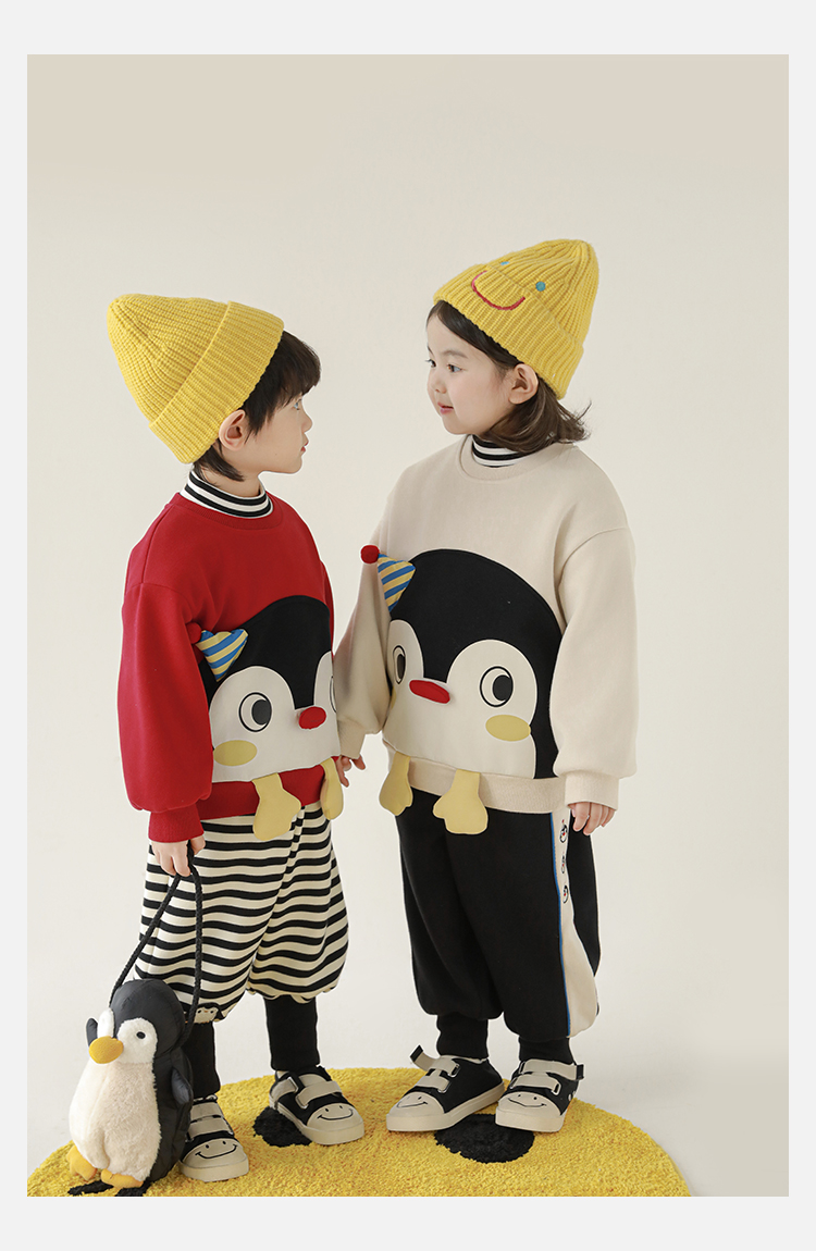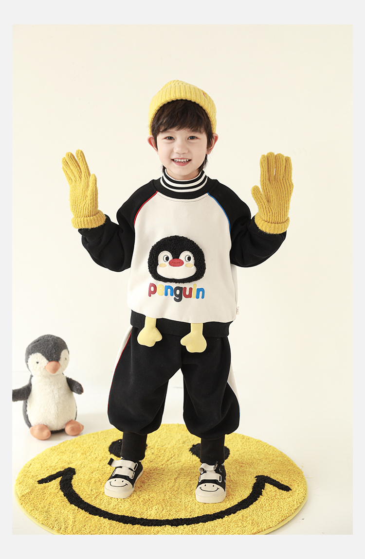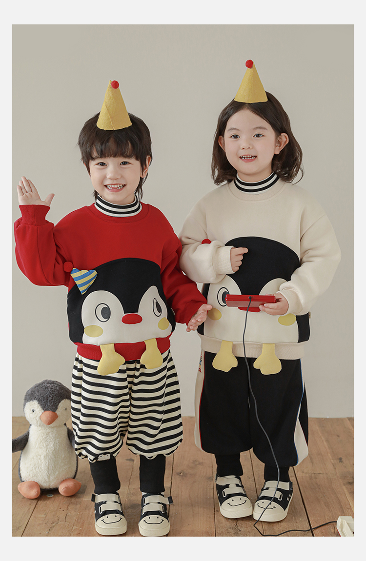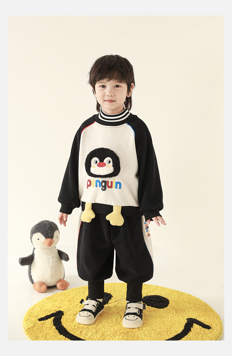 Wulibu Yinan 2025 새로운 만화 펭귄 방풍 레깅스 아동 스포츠 바지 겨울 벨벳 바지스토어 가기