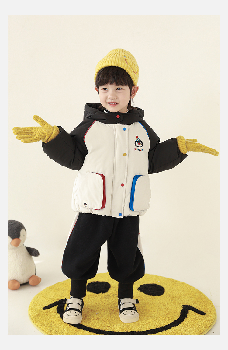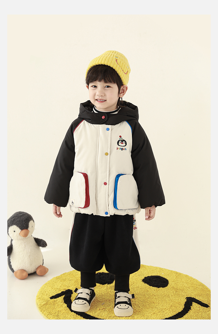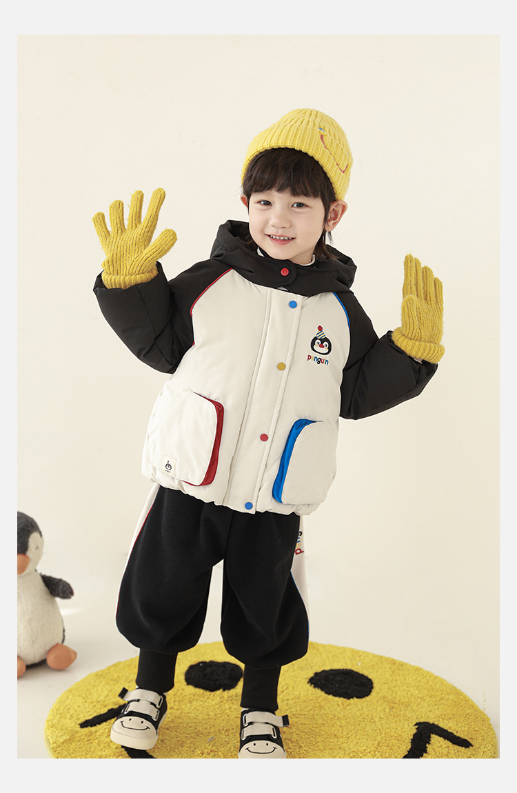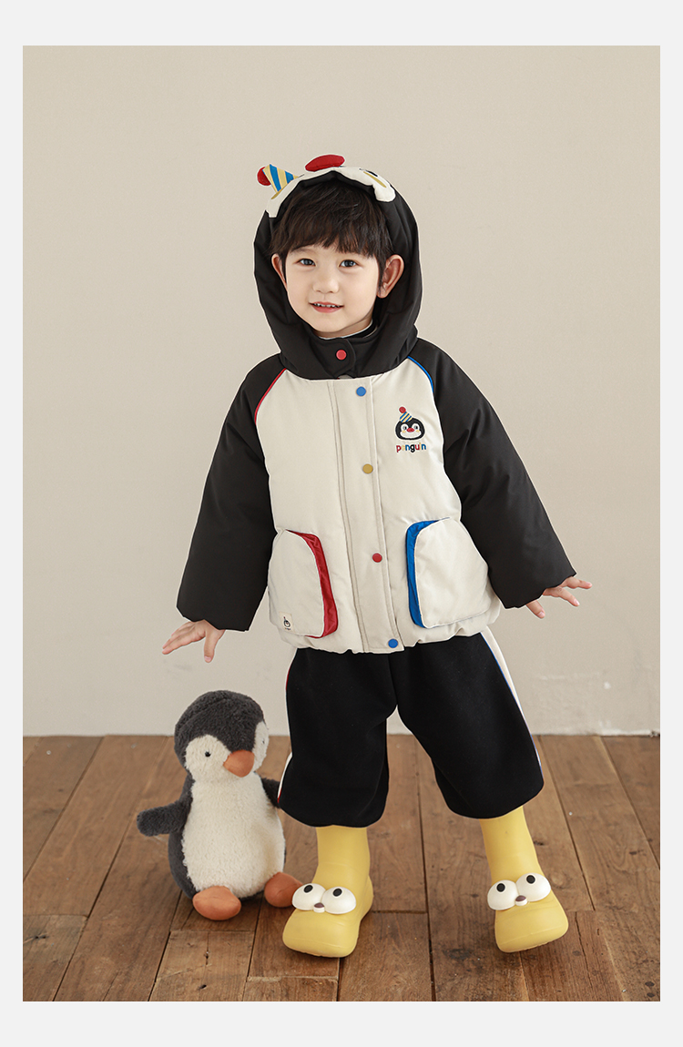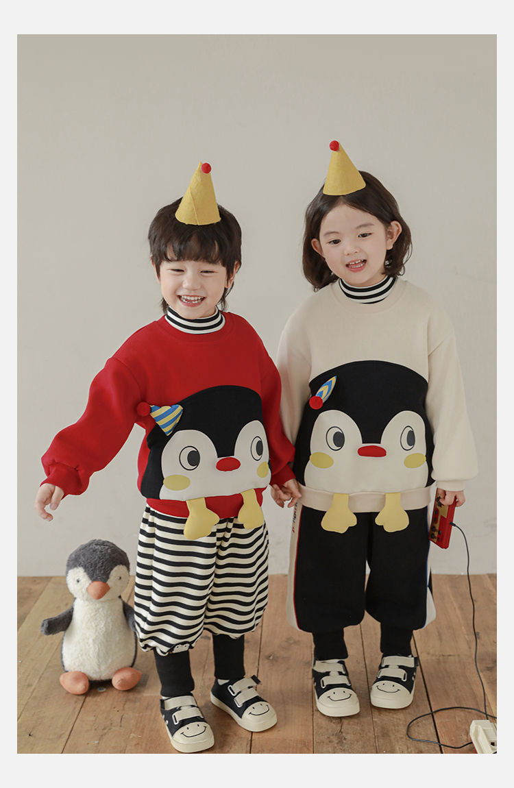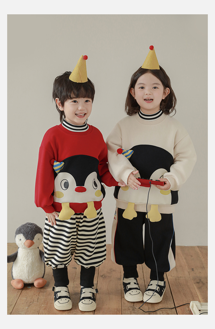 Wulibu Yinan 2025 새로운 만화 펭귄 방풍 레깅스 아동 스포츠 바지 겨울 벨벳 바지스토어 가기