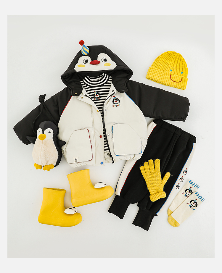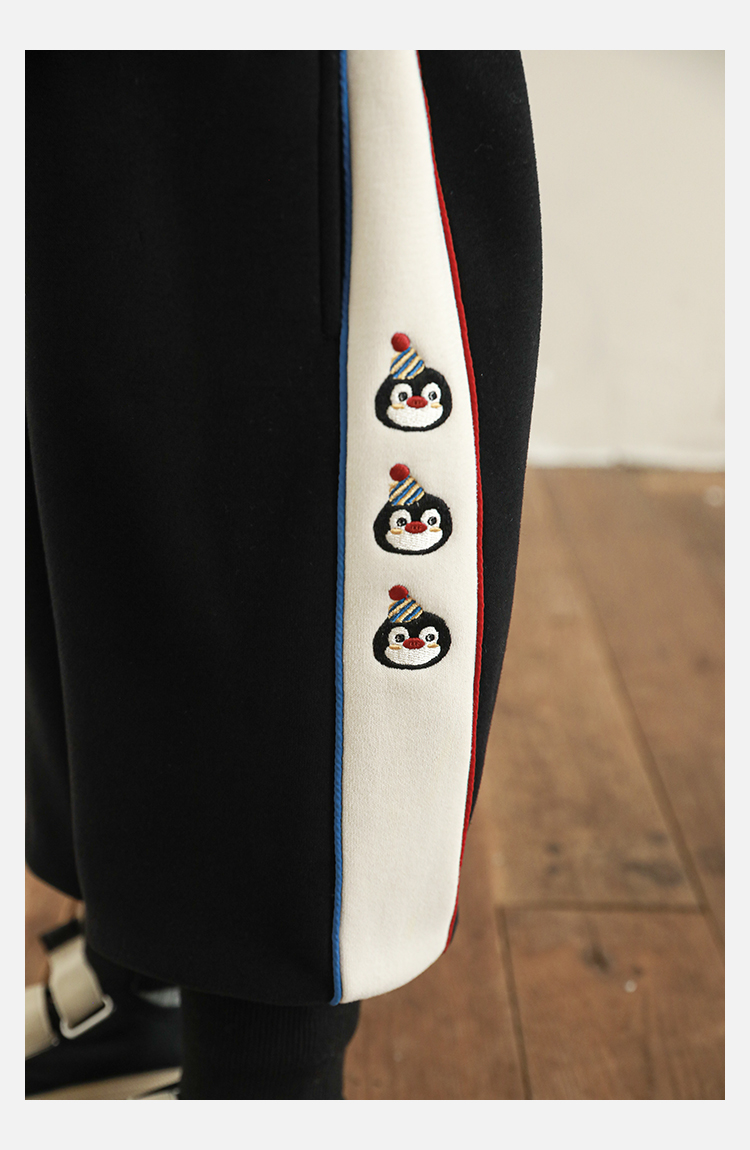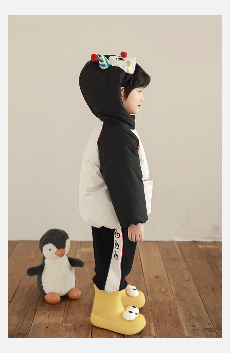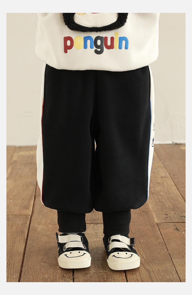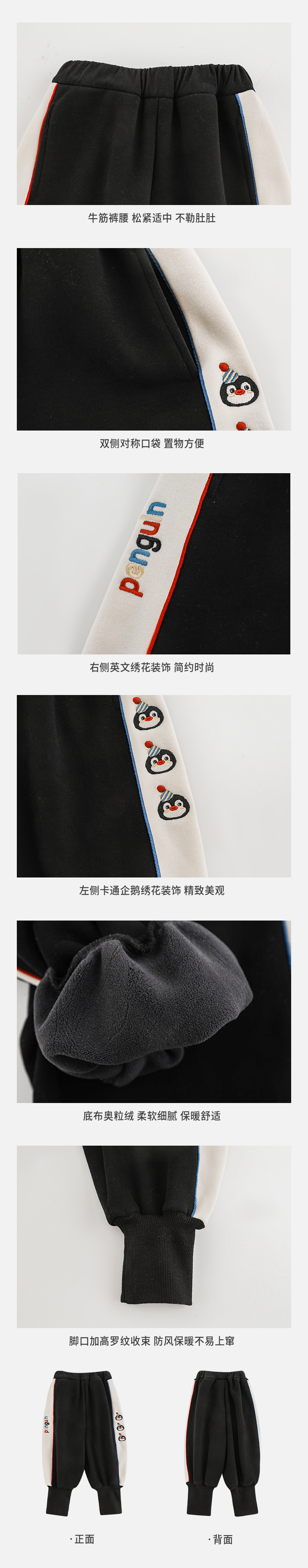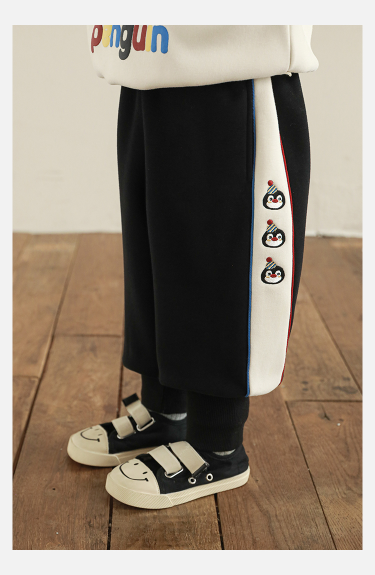 Wulibu Yinan 2025 새로운 만화 펭귄 방풍 레깅스 아동 스포츠 바지 겨울 벨벳 바지