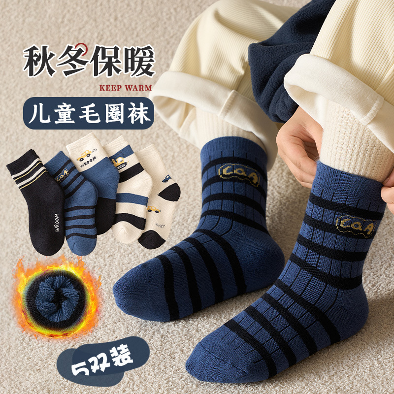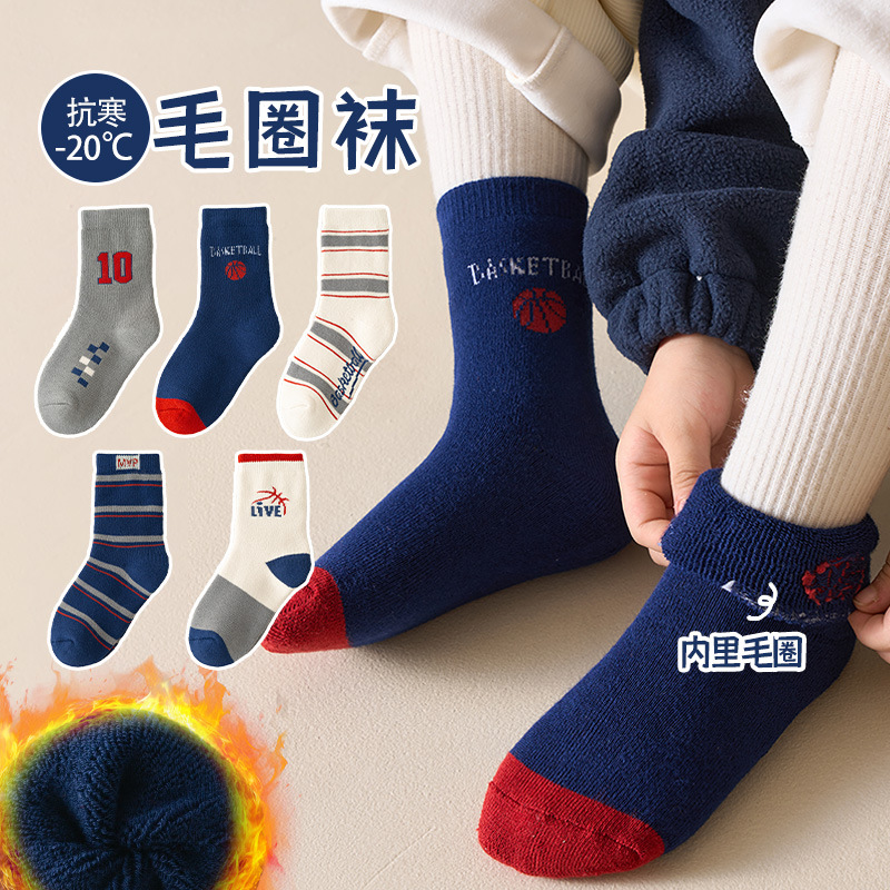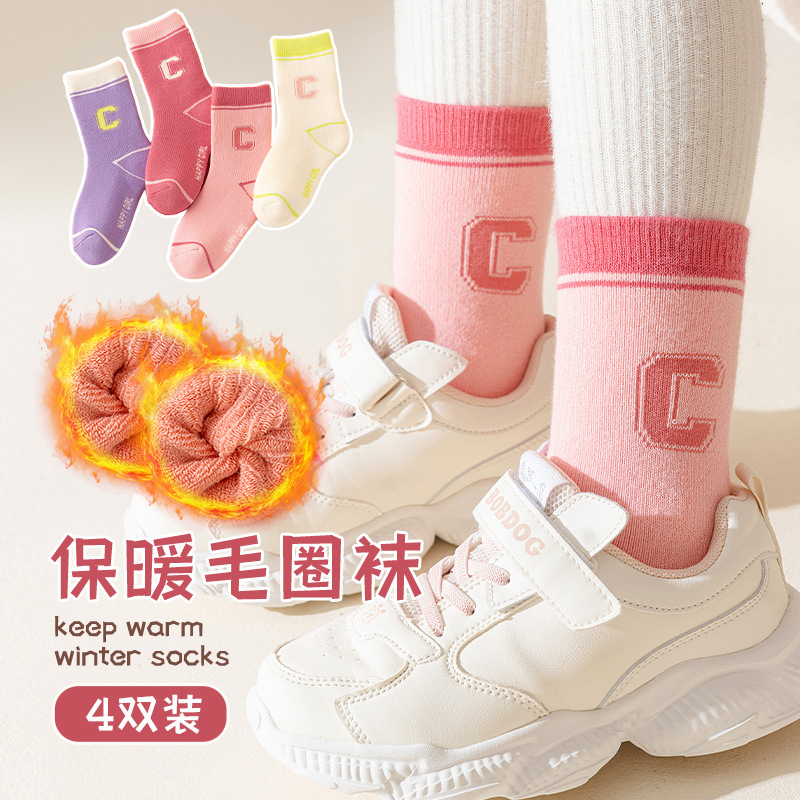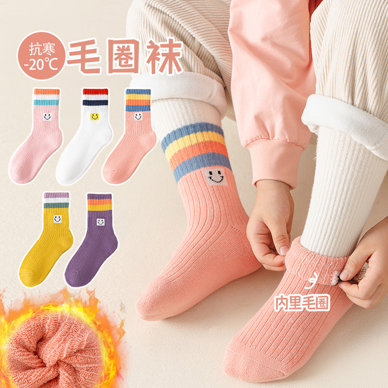 [신간] 남학생과 여학생을위한 어린이 양말 튜브에 가을과 겨울 두꺼운 테리 양말 큰 어린이 수건 양말 겨울스토어 가기