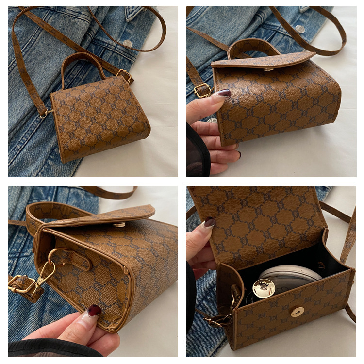 미니 가방 여성의 2024 가을 새로운 독특한 유행 작은 광장 가방 캐주얼 2 쌍 인쇄 어깨 크로스 바디 백