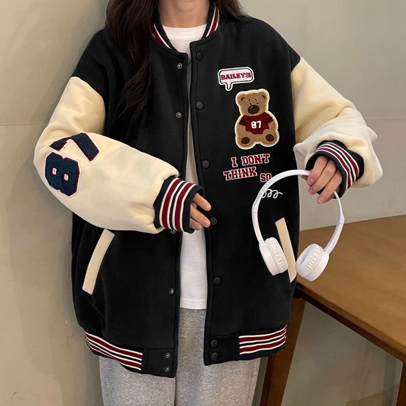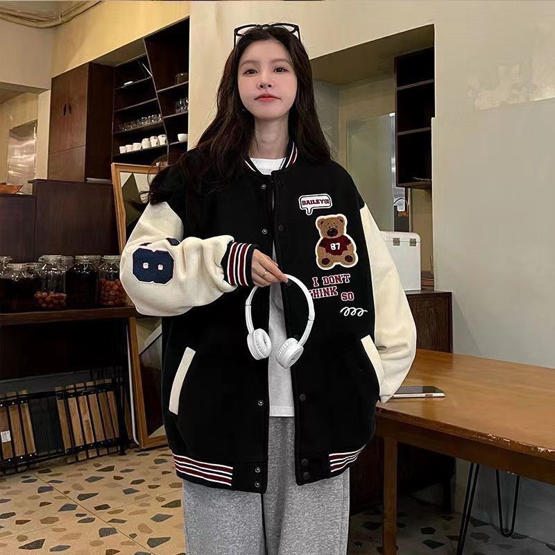야구 유니폼 복고풍 학생 인터넷-유명한 곰 카디건 여자 봄과 가을 홍콩 스타일 플러스 사이즈 슬림 올 매치 재킷 코트 트렌디스토어 가기