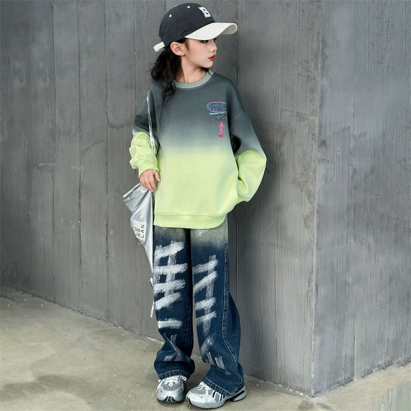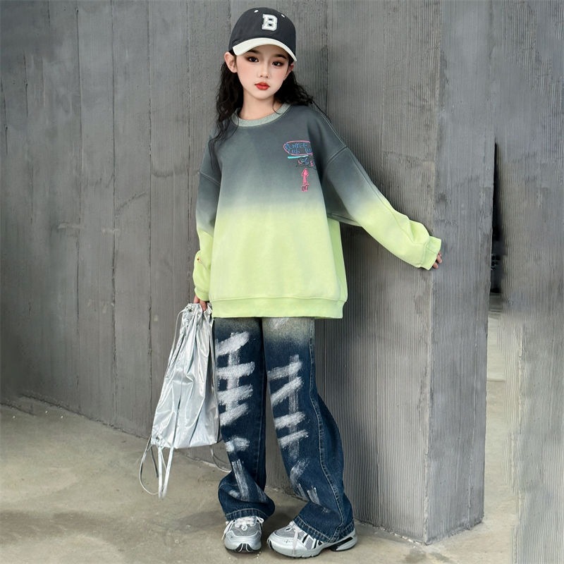 소녀들의 가을 옷 세트 소녀들의 봄 가을 서양식 스포츠 운동복 투피스 세트 2024 새로운 한국 인터넷 기념