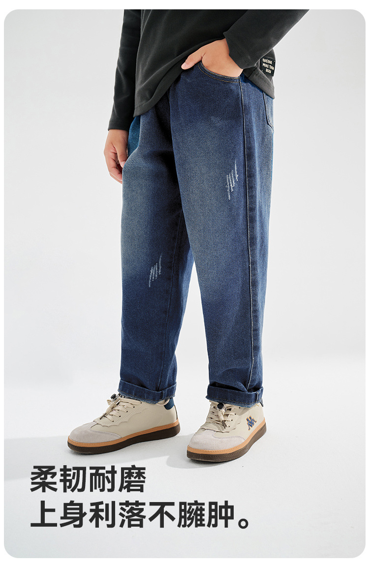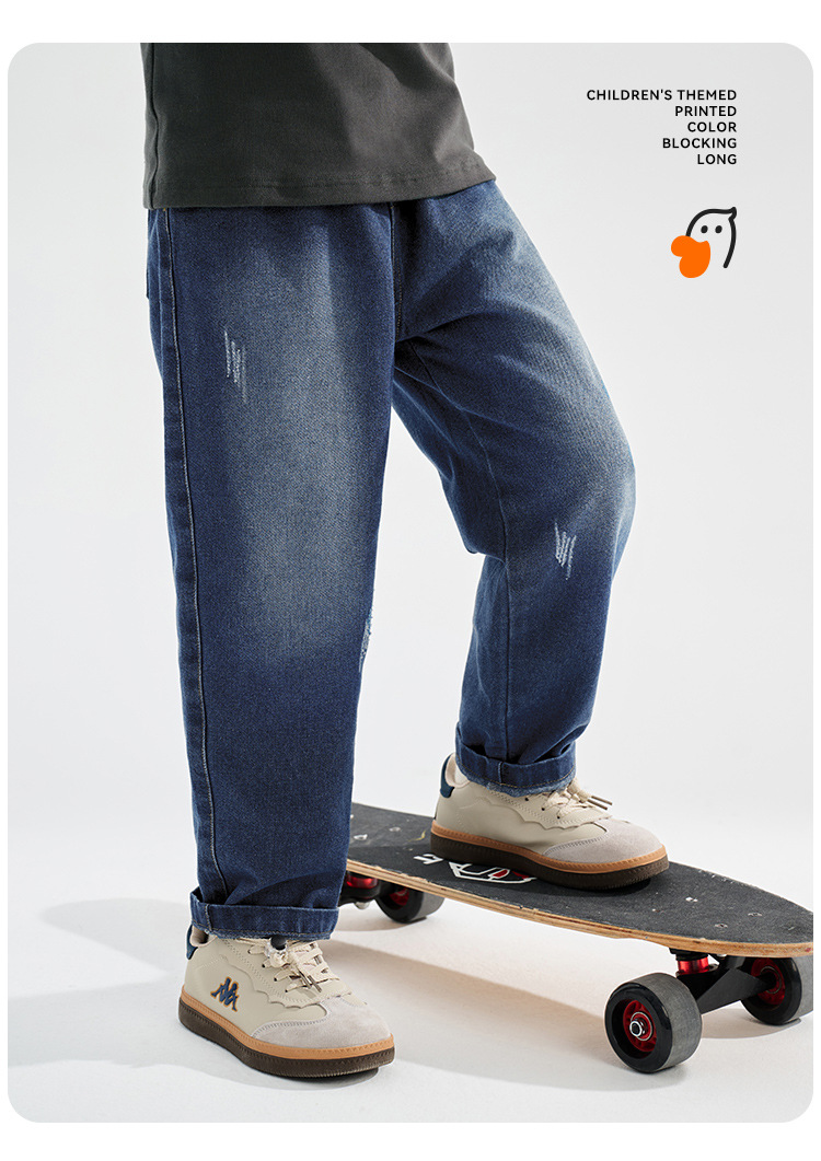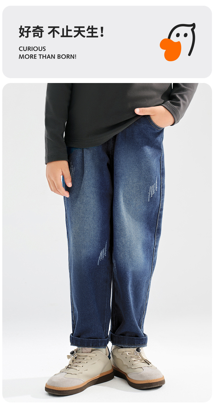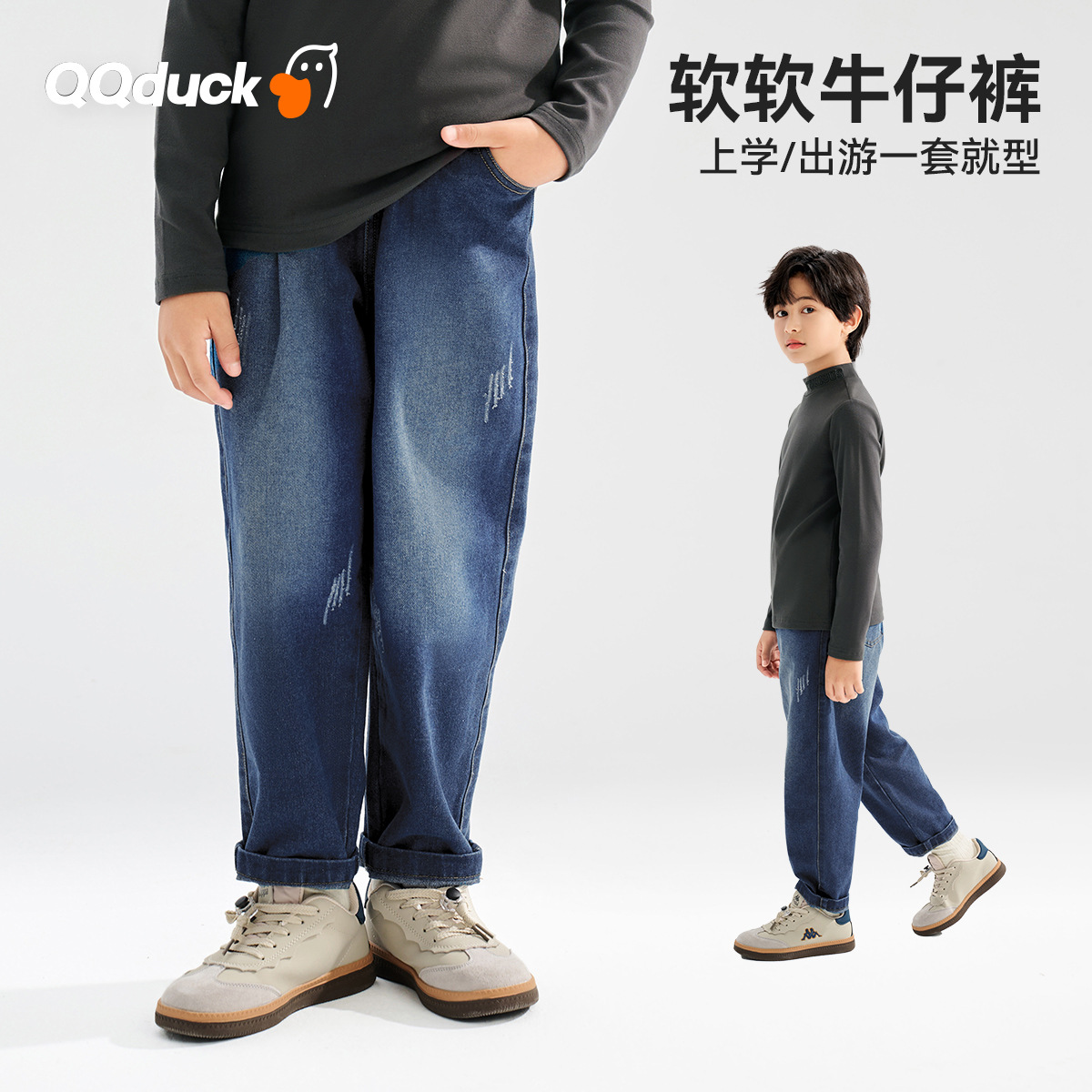 QQduck 간단한 올 매치 청바지 가을 새로운 편안한 어린이 바지 학교 시즌 캐주얼 소년 청바지