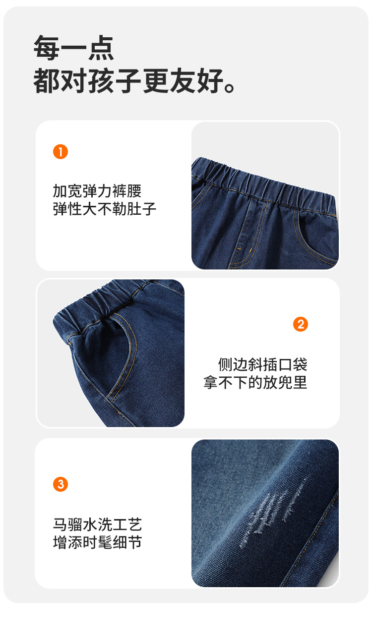 QQduck 간단한 올 매치 청바지 가을 새로운 편안한 어린이 바지 학교 시즌 캐주얼 소년 청바지스토어 가기