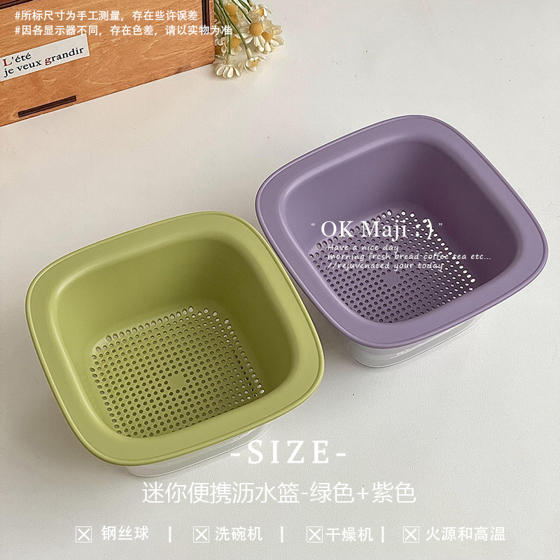 • 미니 휴대용 배수 바구니 - 녹색 + 보라색