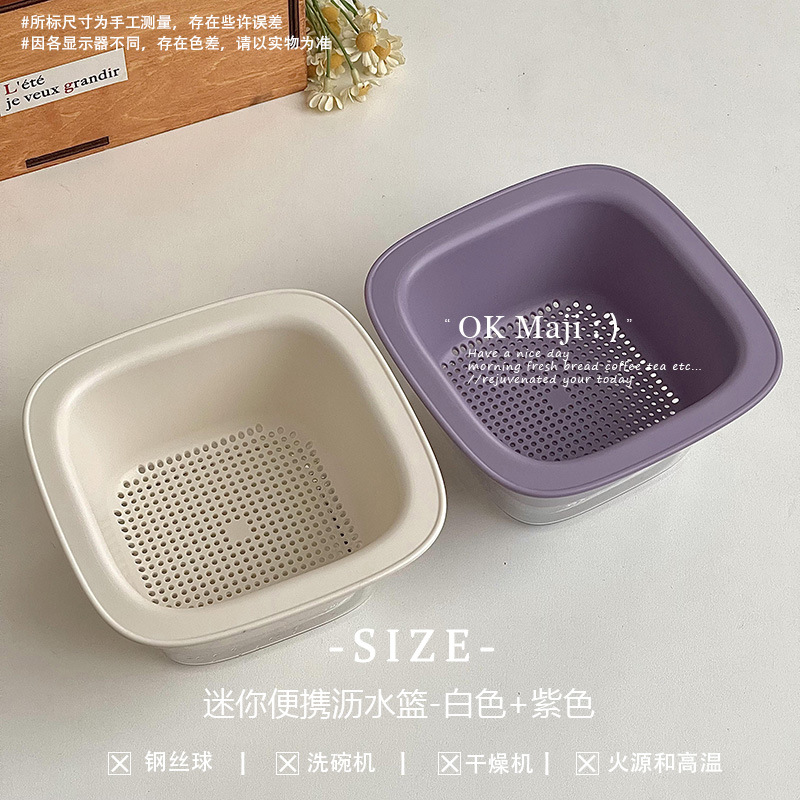 • 미니 휴대용 배수 바구니 - 흰색 + 보라색