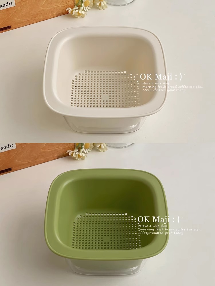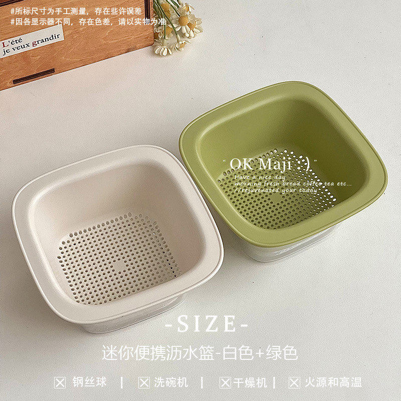 • 미니 휴대용 배수 바구니 - 흰색 + 녹색