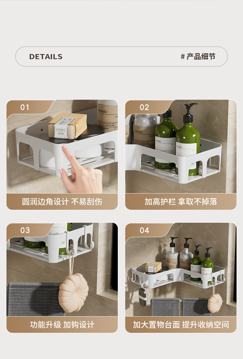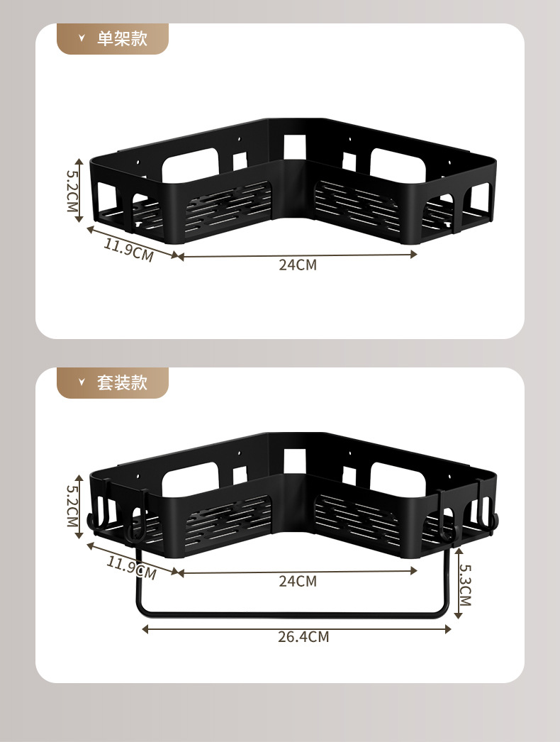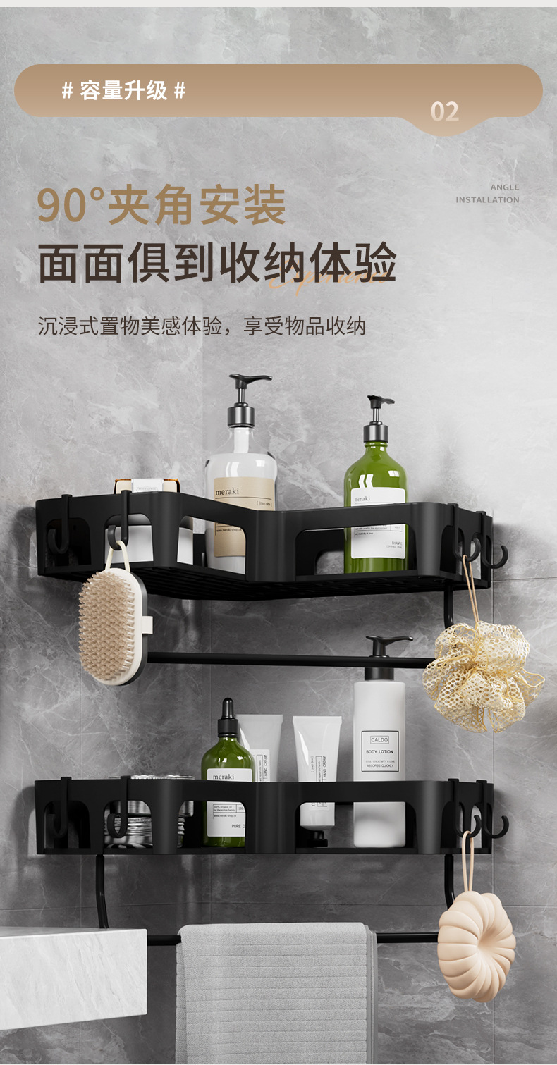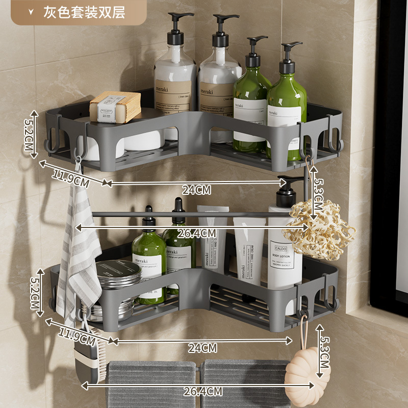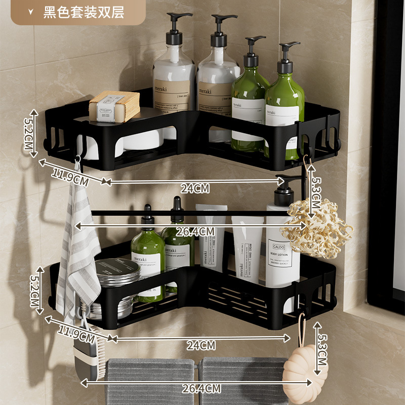 크로스보더 무타공 욕실 삼각 선반 벽걸이형 코너 선반 비누걸이 세면도구 수납 선반