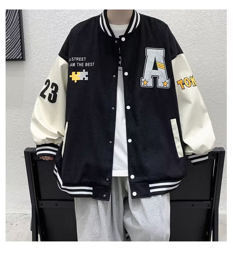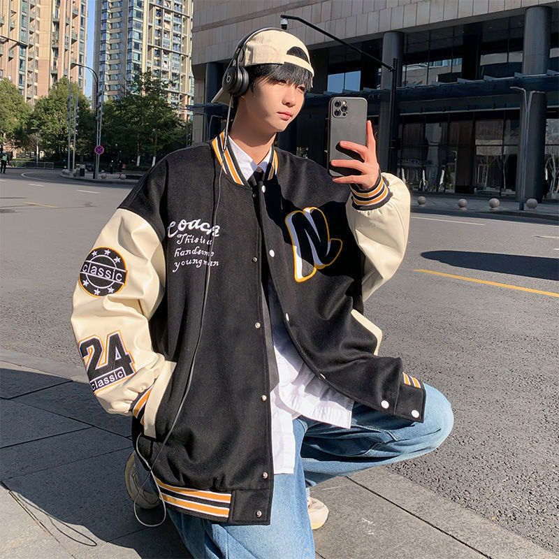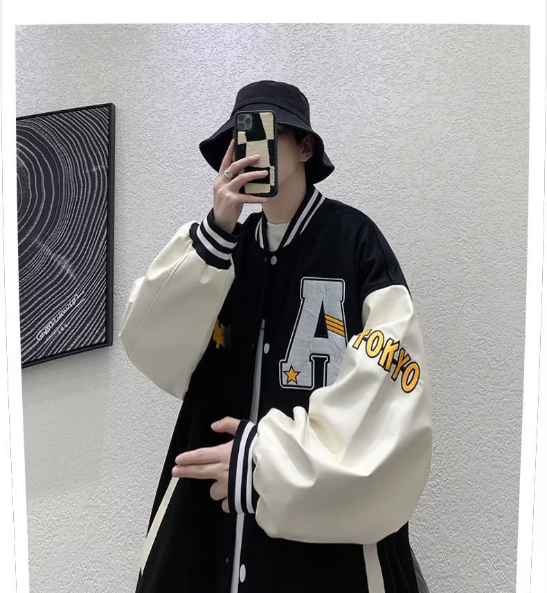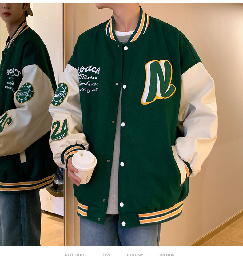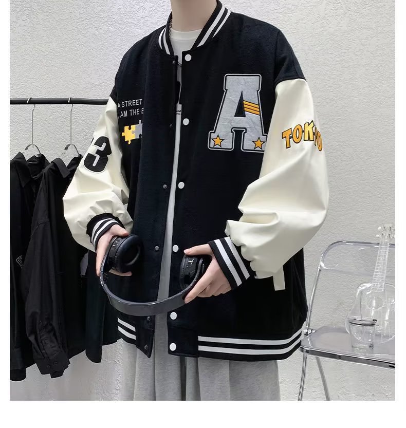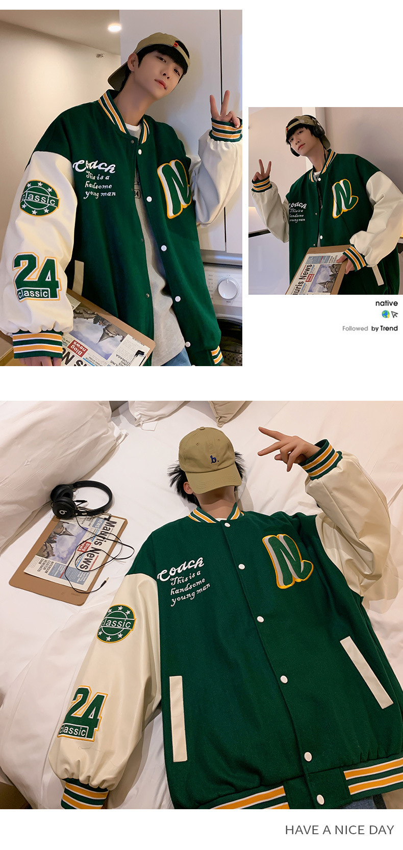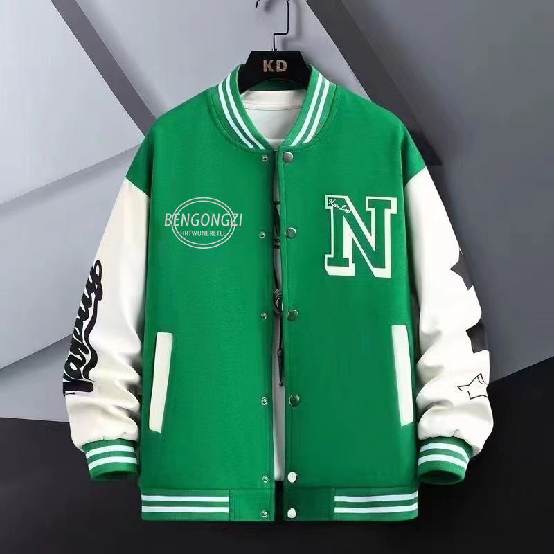 트렌디 한 브랜드 야구 세트 남자 봄과 가을 2024 새로운 캐주얼 올 매치 스티칭 대비 컬러 핸섬 남성 재킷 탑