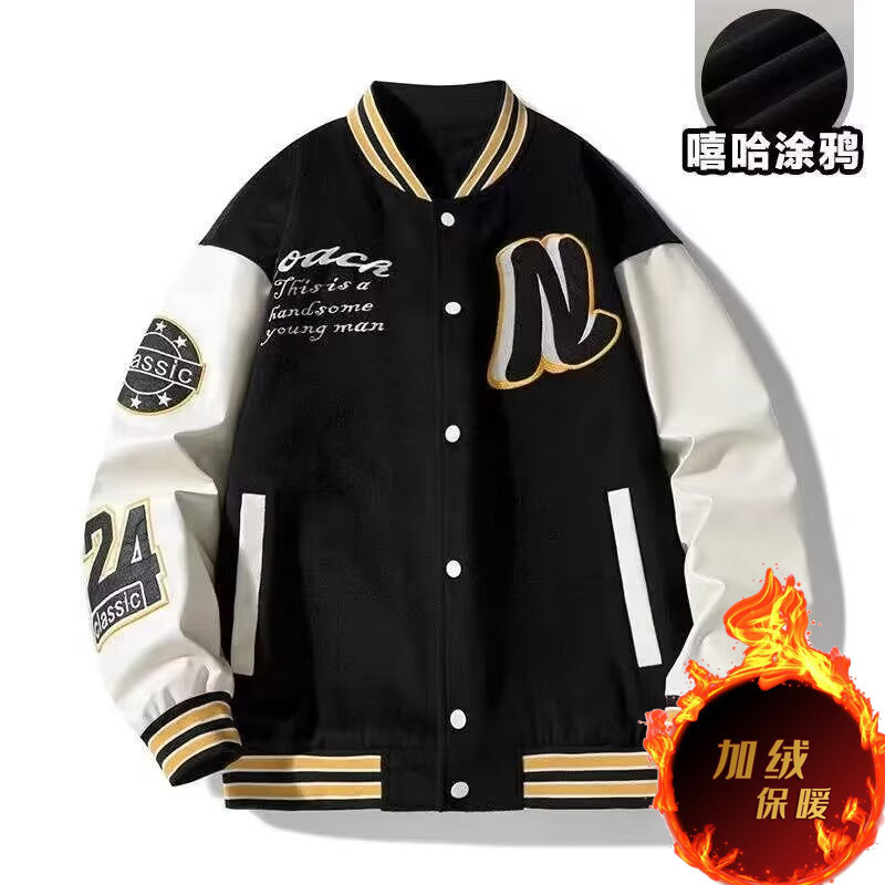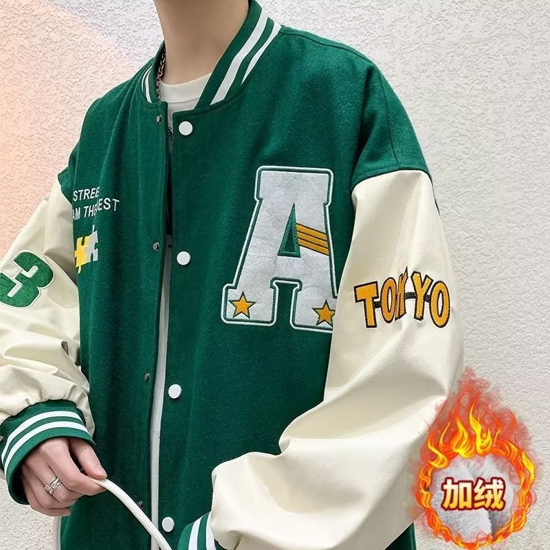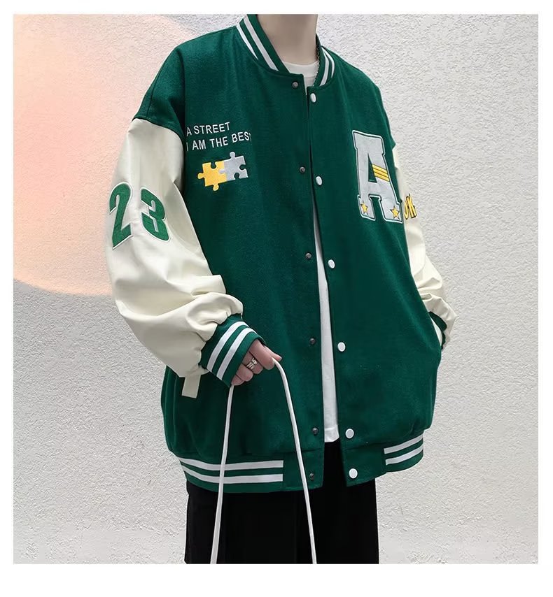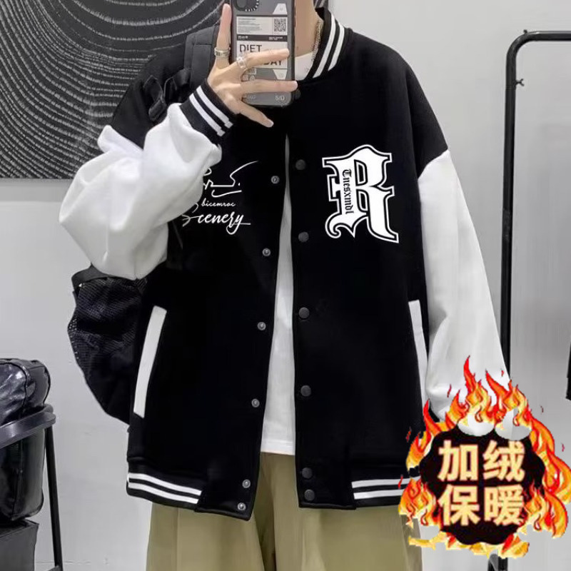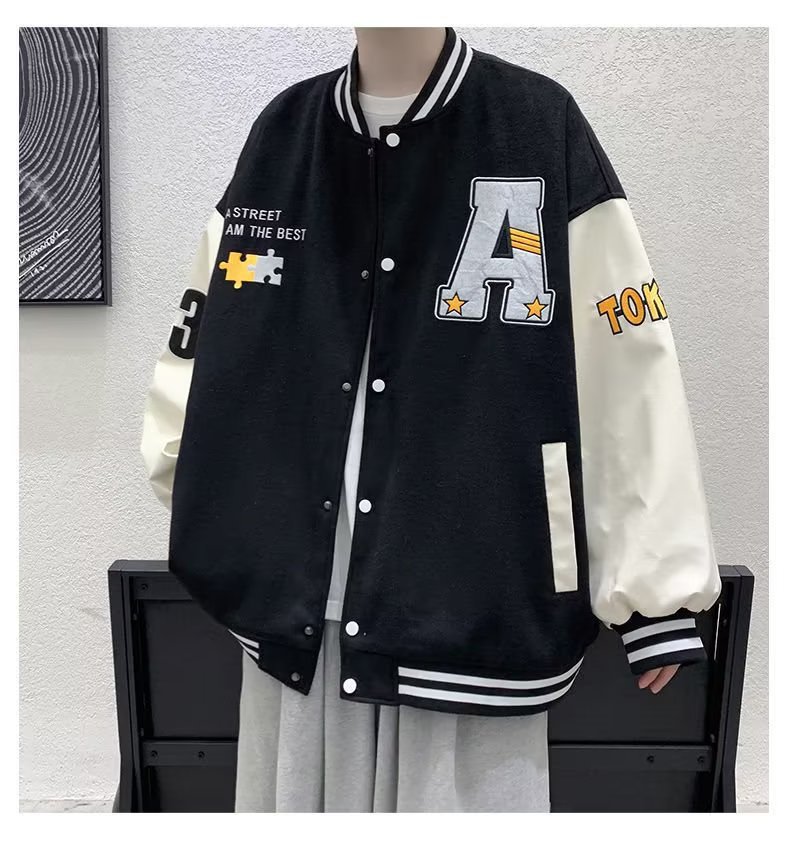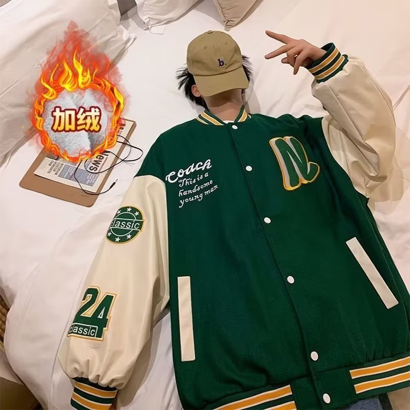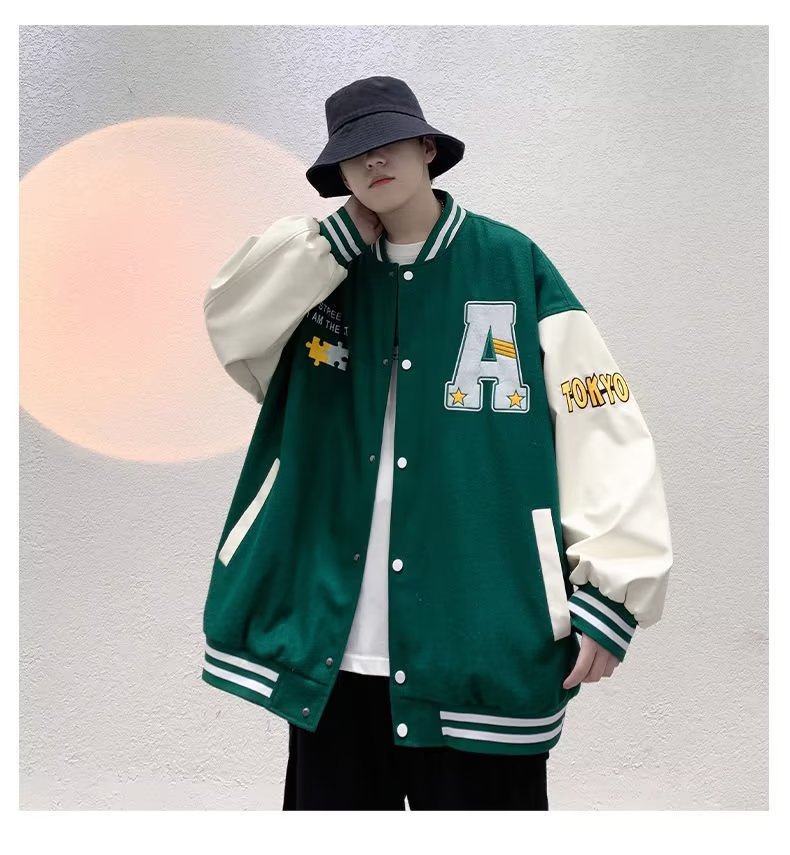 트렌디 한 브랜드 야구 세트 남자 봄과 가을 2024 새로운 캐주얼 올 매치 스티칭 대비 컬러 핸섬 남성 재킷 탑