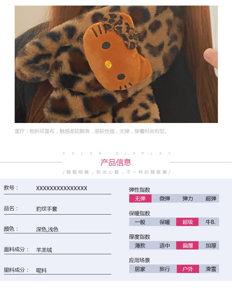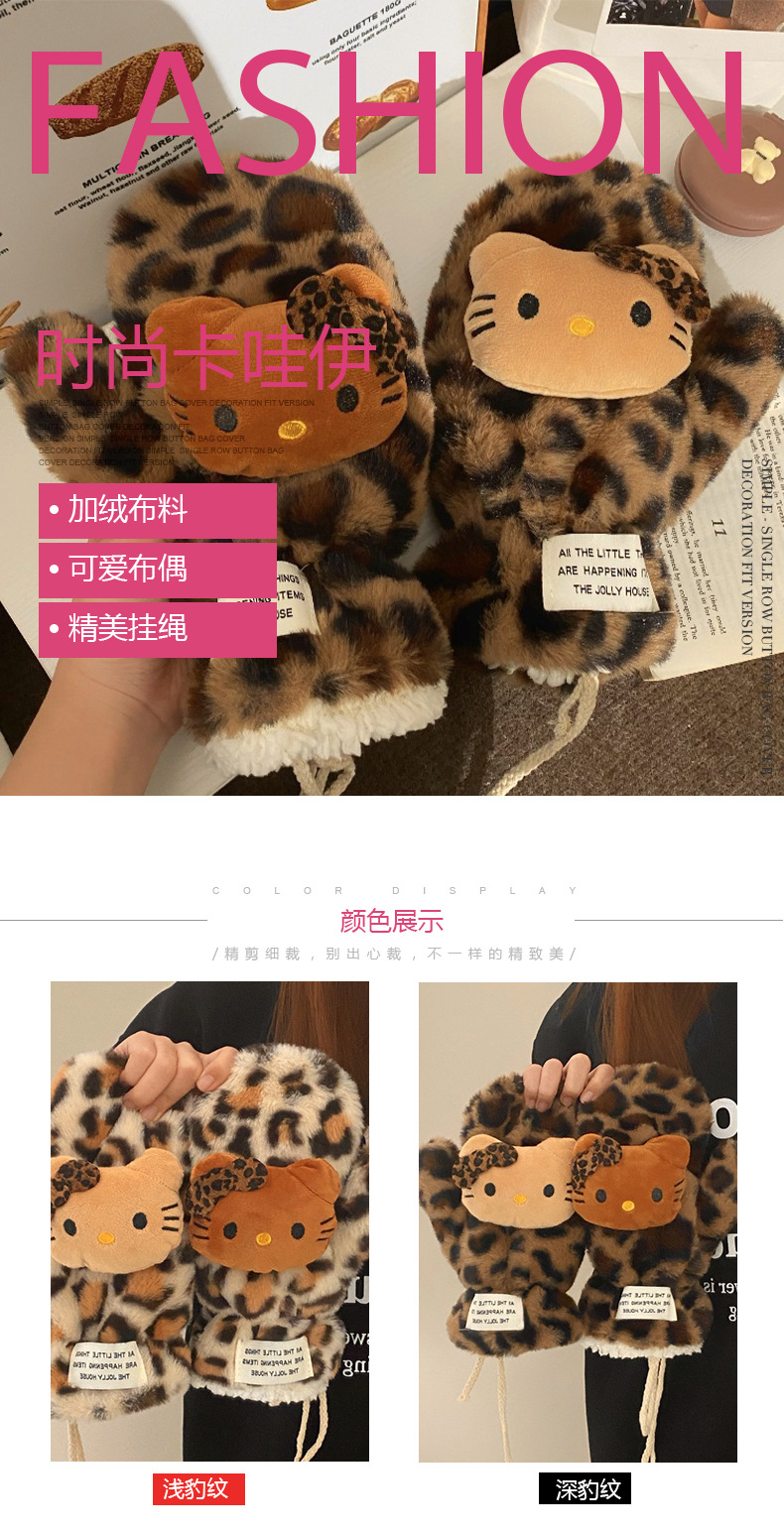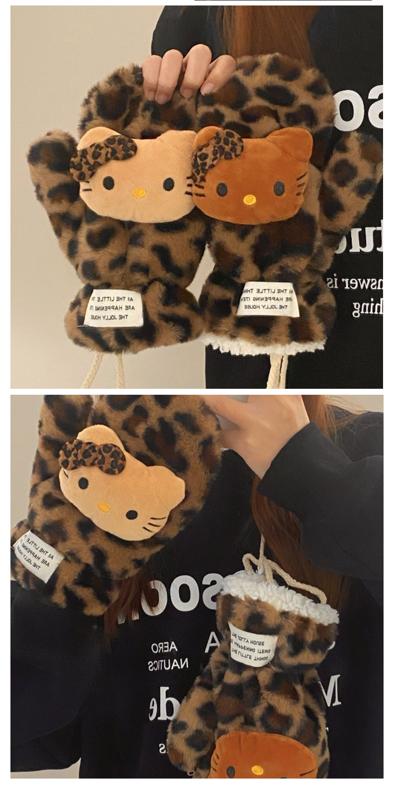 레오파드 무늬 따뜻한 장갑 여성의 가을과 겨울 기모 야외 따뜻한 차가운 학생 귀여운 레오파드 무늬 고양이 장갑스토어 가기