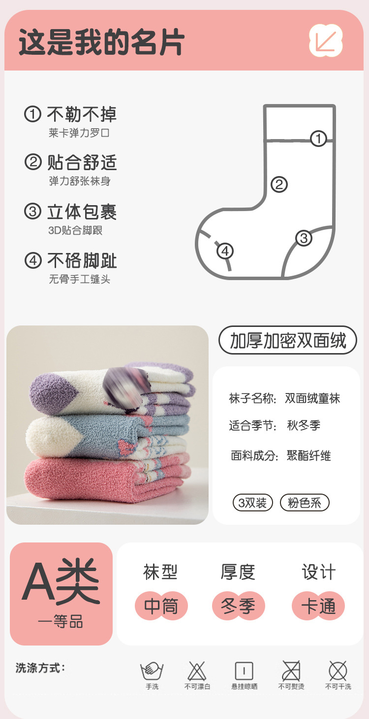 여아용 양말 가을 겨울용 두꺼운 양털 양말 산호 벨벳 롱 양말 어린이용 보온 양말 A급스토어 가기
