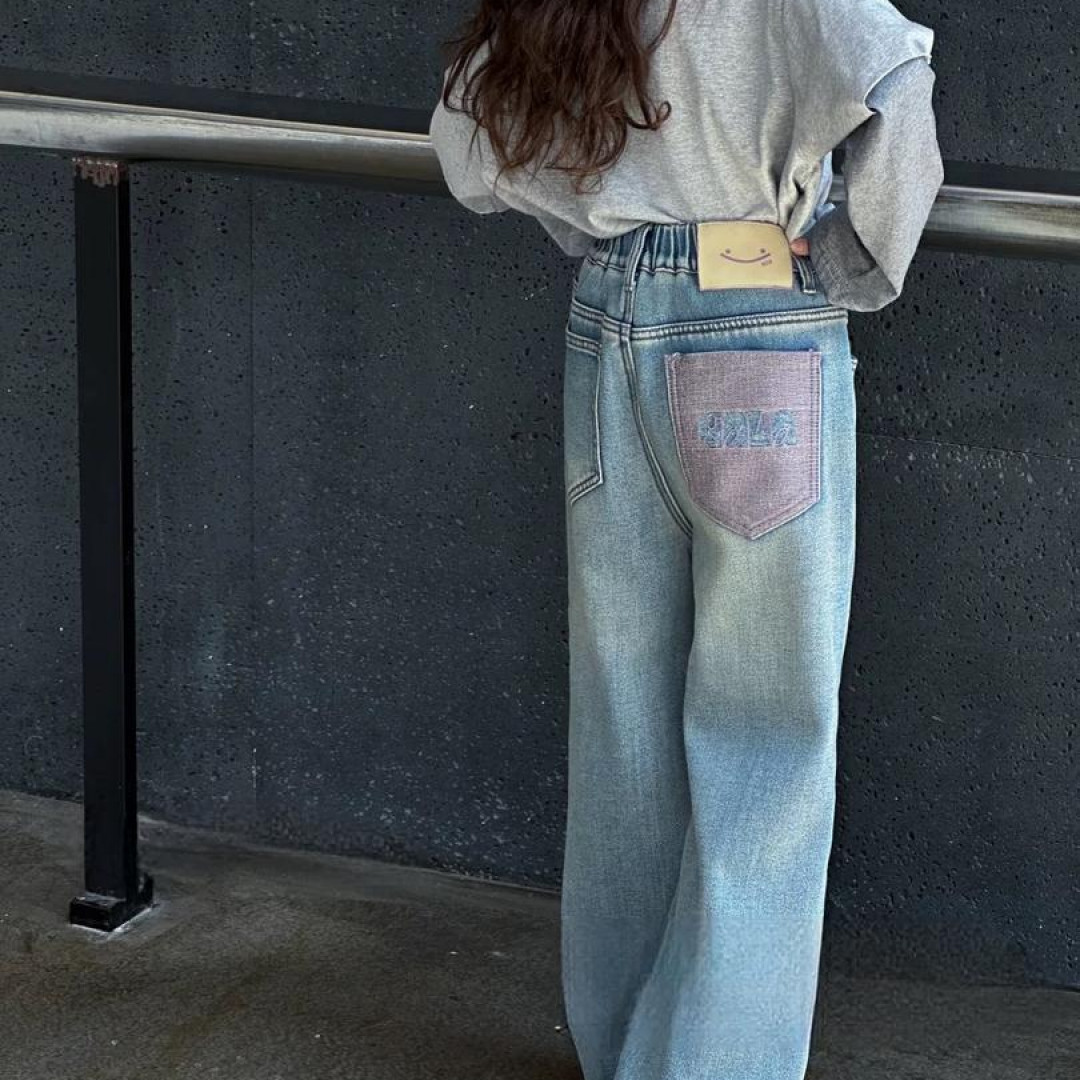 소녀 기모 청바지 2024 가을/겨울 새로운 스타일 중대형 어린이의 두꺼운 따뜻한 넓은 다리 느슨한 직선 바지스토어 가기